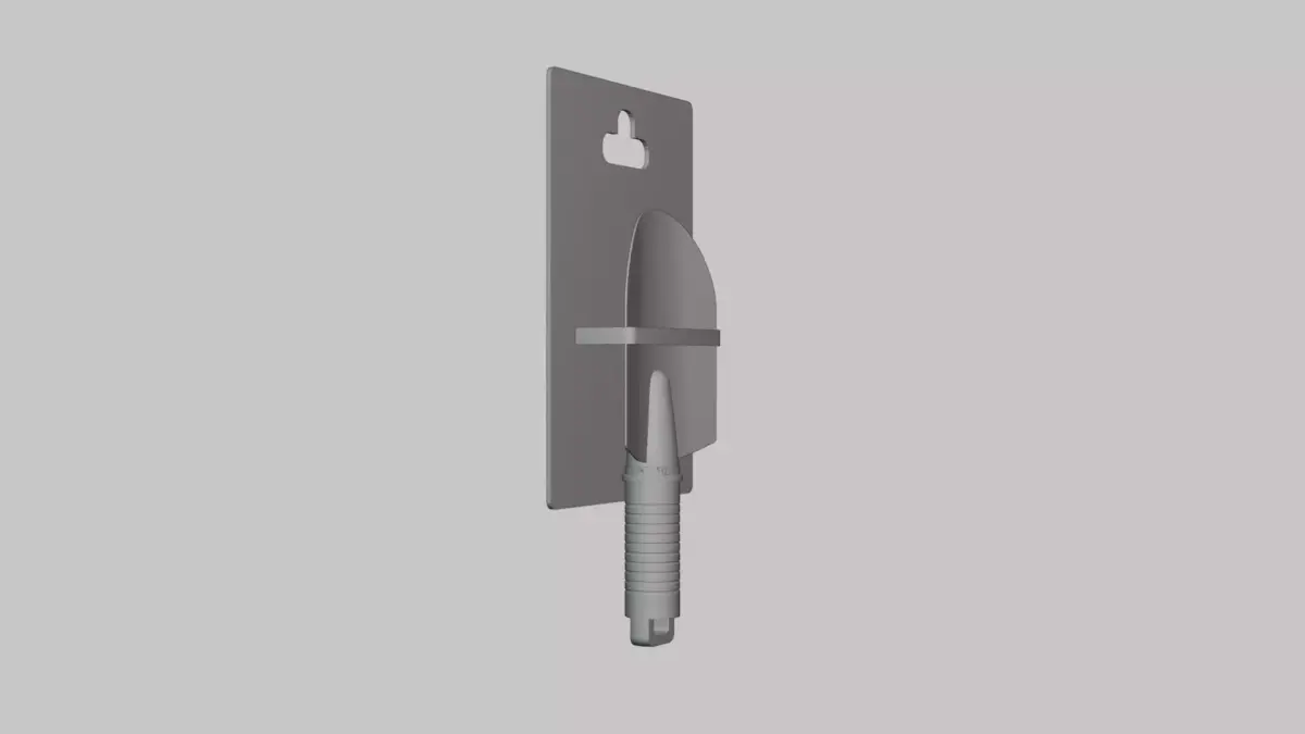 3D model of a garden shovel including backing card, blister seal, grip handle, connector, and shovel tool. Perfect for gardening product mockups, store shelf visualization, and promotional renders.