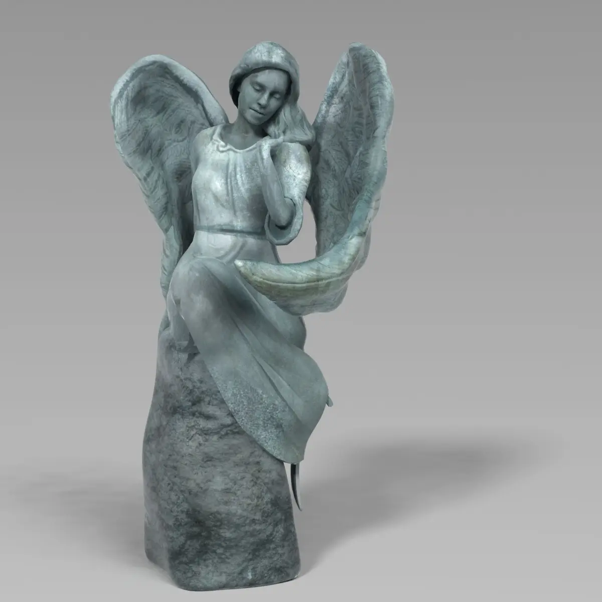 This is a 3d model of a bronze statue of an angel. Texture: DM, 4K.