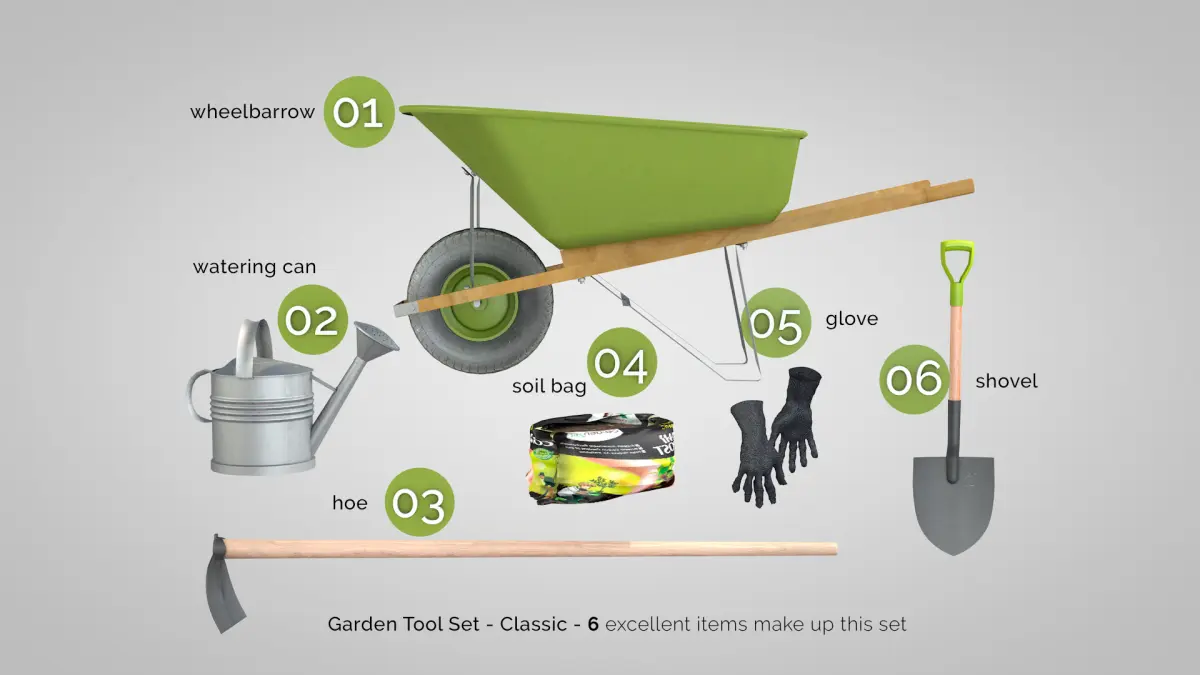 Garden tool set - classic Made in Cinema 4D R19 in polygonal mesh and exported to the files; 3ds, dae, fbx, stl, obj and blend, with uv mapping.The set has 6 items; watering can, wheelbarrow, hoe, shovel, gloves and bag of soil.I hope you like it and that it is useful in your work.Thank you for visiting,renatodalle