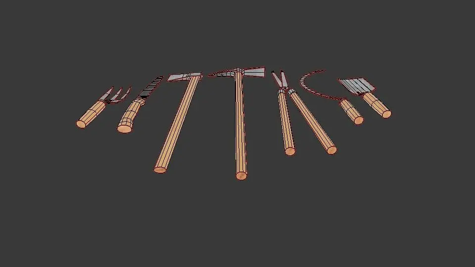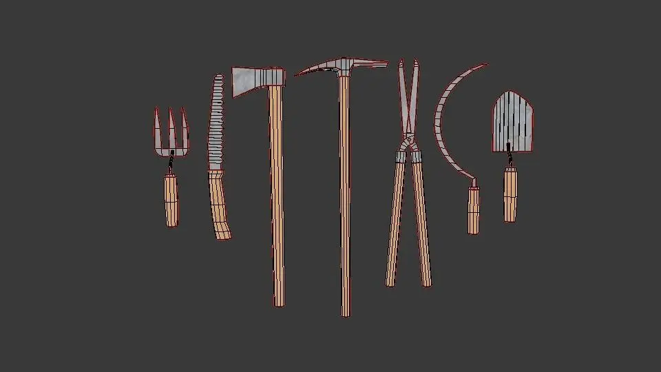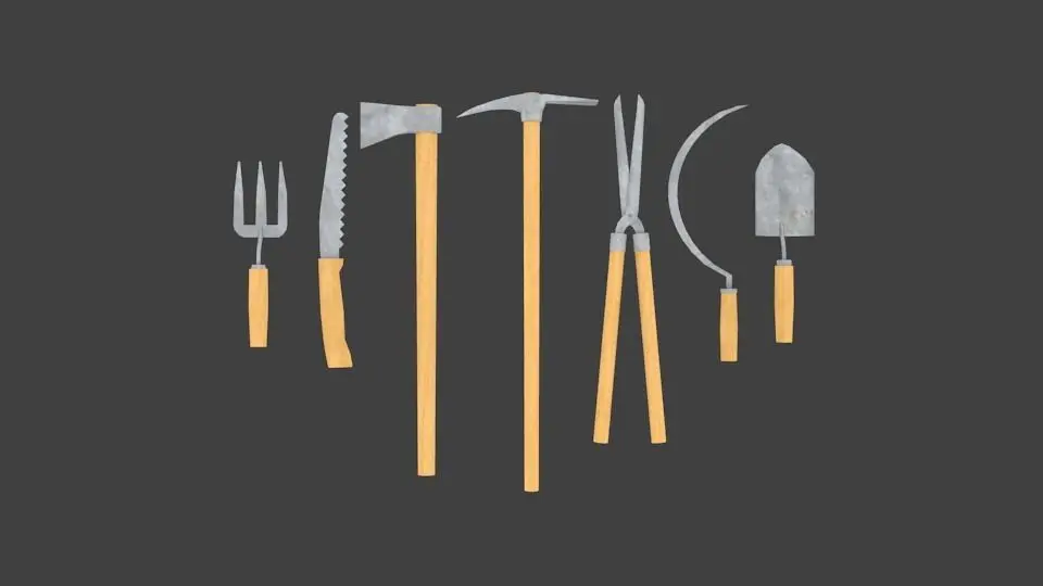 The Garden tools lite set includes 7 model:SawTrowel(2 types)AxePrunerPickSickle