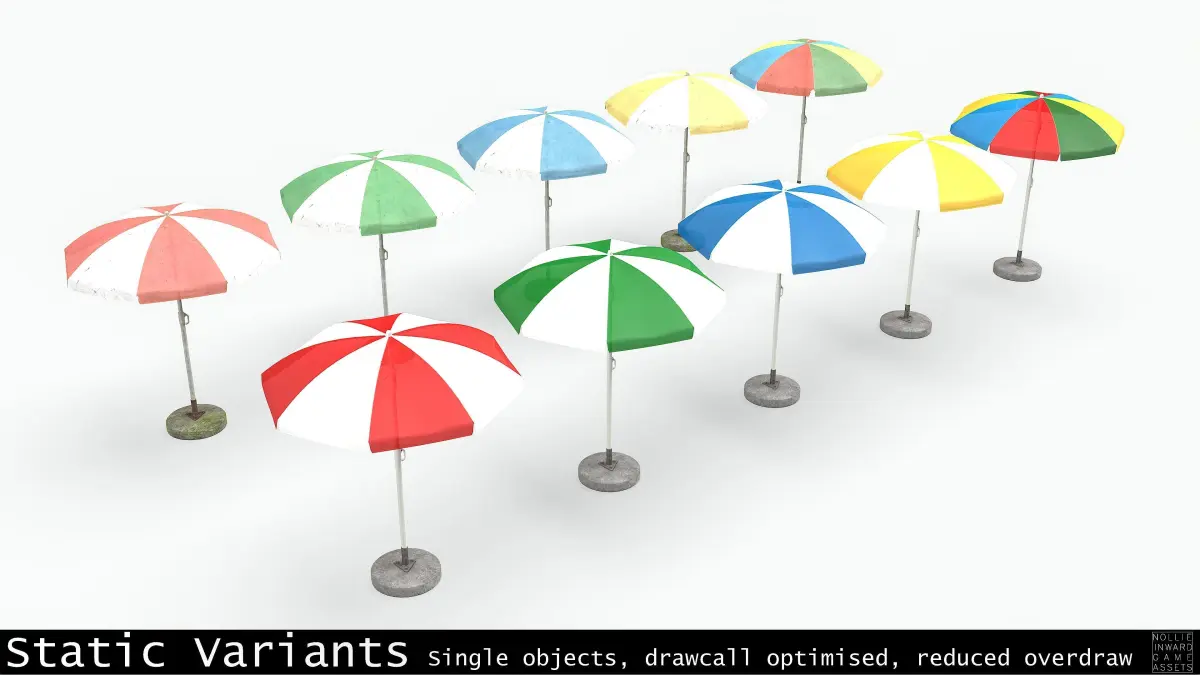 Garden Umbrella - Colorful, Red, Green, Blue, Yellow - each in Clean and Dirty variants.