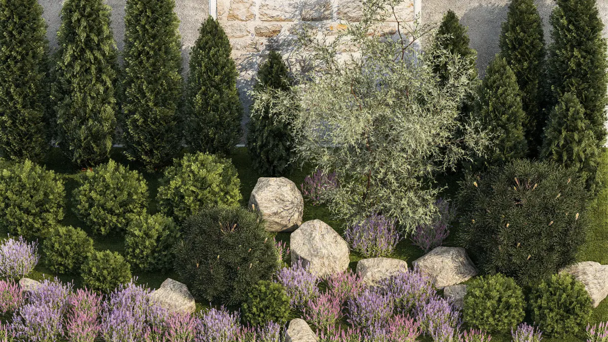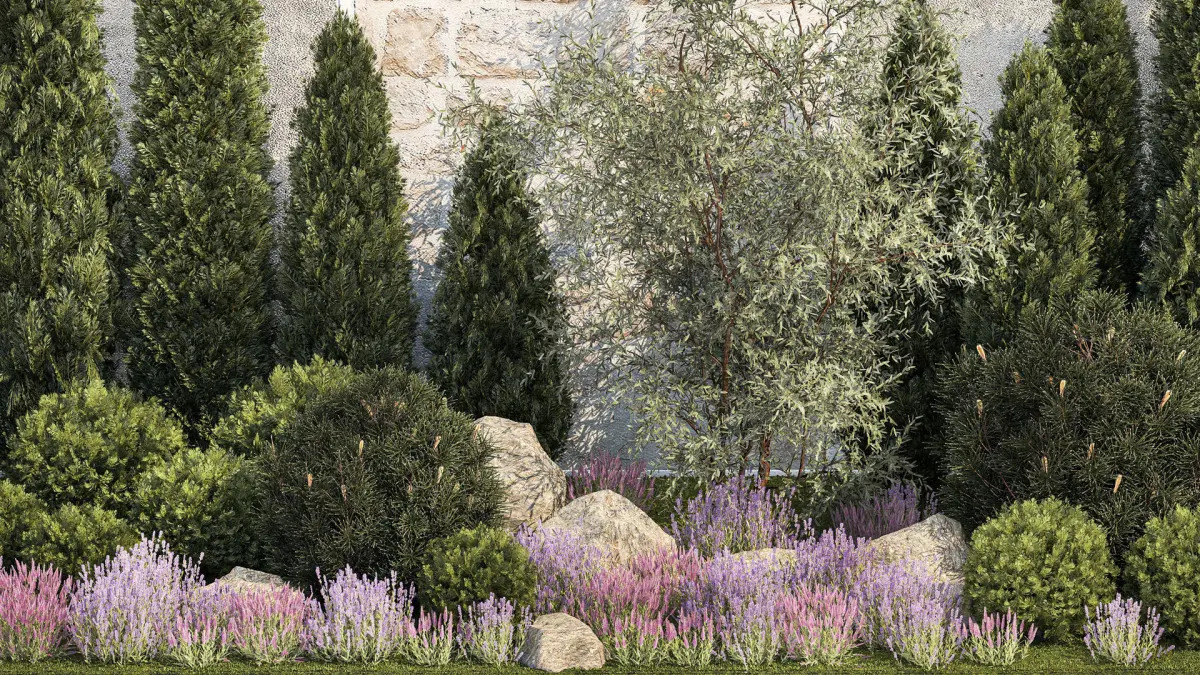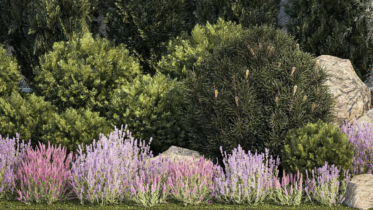 Garden Alpine hill, ornamental trees and bushes for landscaping, landscaping, urban environment, street landscaping, garden and house territory decoration, park.Plants, greenery, lawn, grass, plot, park area. Coniferous treesBushes for the street, public areas, decorDecorative grass for decoration. Bushes for the garden, alpine slide.Elements of the urban environment, space, landscaping, house territory, urban environment, street, square, parkCypress - Cupressus, Cypress gardenThuja - ThujaJuniper - Juniperus, Juniperset, set, collectionspruce, fir, fir-tree, fir, fir-tree, Picea, sprucegarden bonsai, topiary, topiary, pine tree, fir-tree, round pineLavender - Lavandula, lavenderKotovnik - Nepeta,Alpine slide, stone, cobblestone, wild stone, boulderSilver goof - Elaeagnus commutataOlive, olive