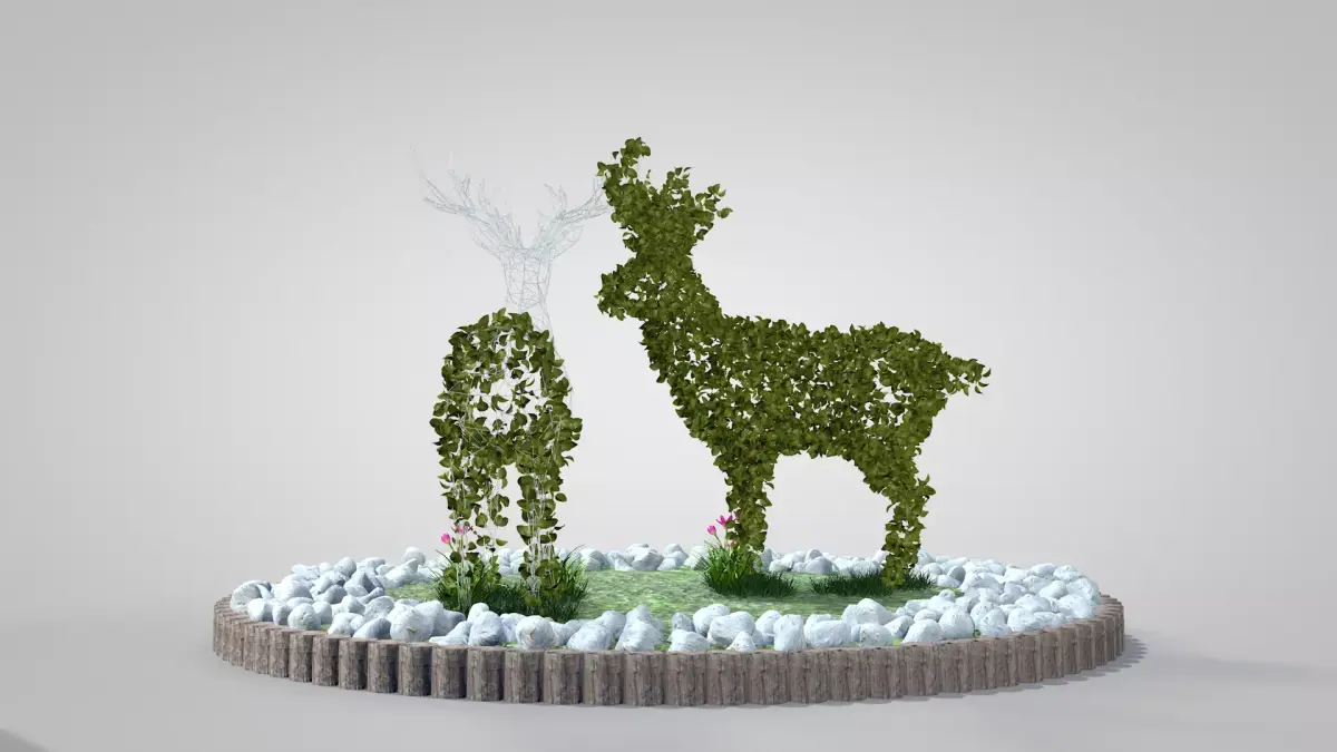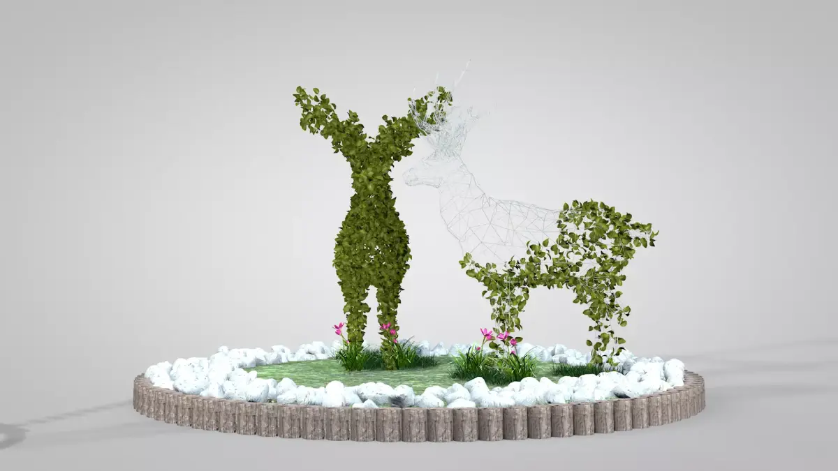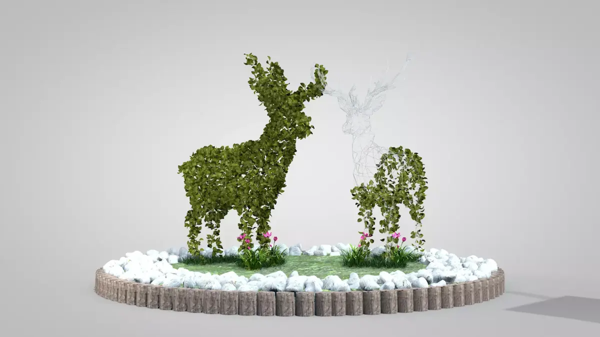 Garden With Deer Topiary made in Cinema 4D R19 in polygonal mesh and exported to dae, fbx, glb, blend, obj files.The textures are PBR in 2k UV mapping; this item contains color, bump, ao, rough, and normal maps.In this item you receive 1 leaf deer and 1 mixed deer with wire, open, opening, and bud flowers, textured lawn, white stones (17 different types), and the garden enclosure with logs.I hope you like it and that it is useful in your scenery.Thank you for visiting, renatodalle.