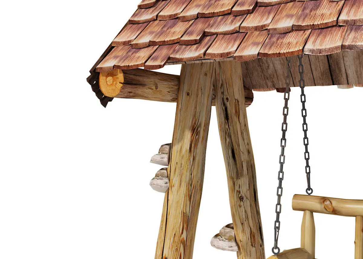 The scene is divided into four logical objects: a swing with a chain; main frame; mushrooms; nails.
