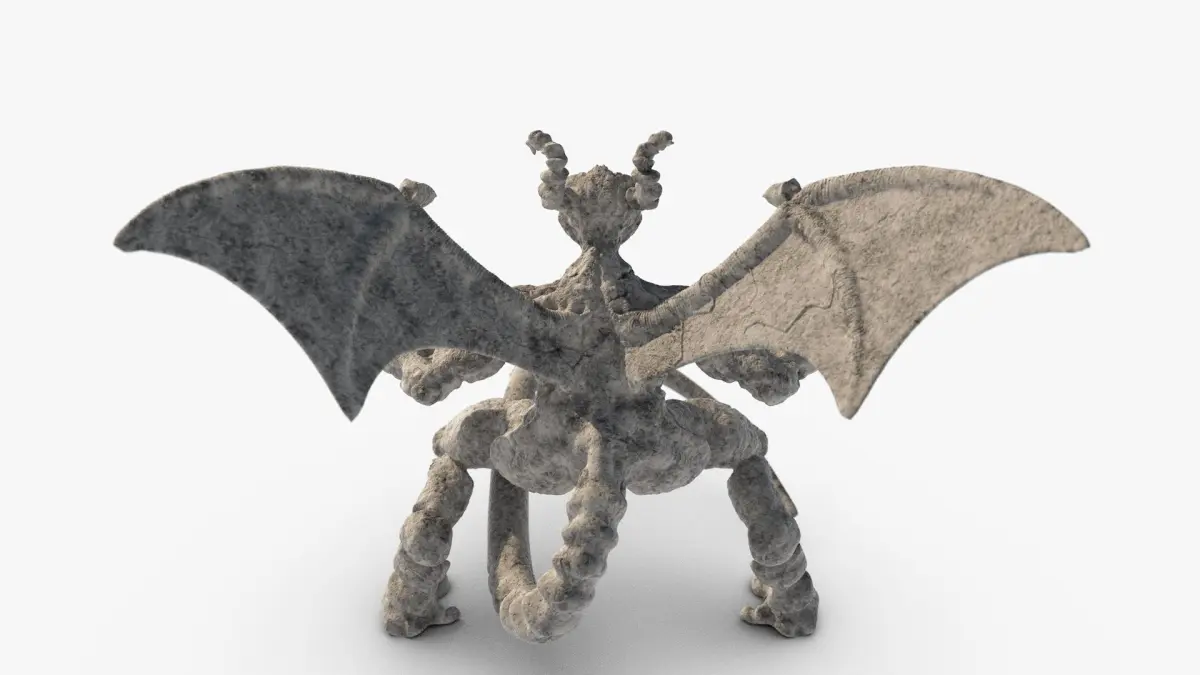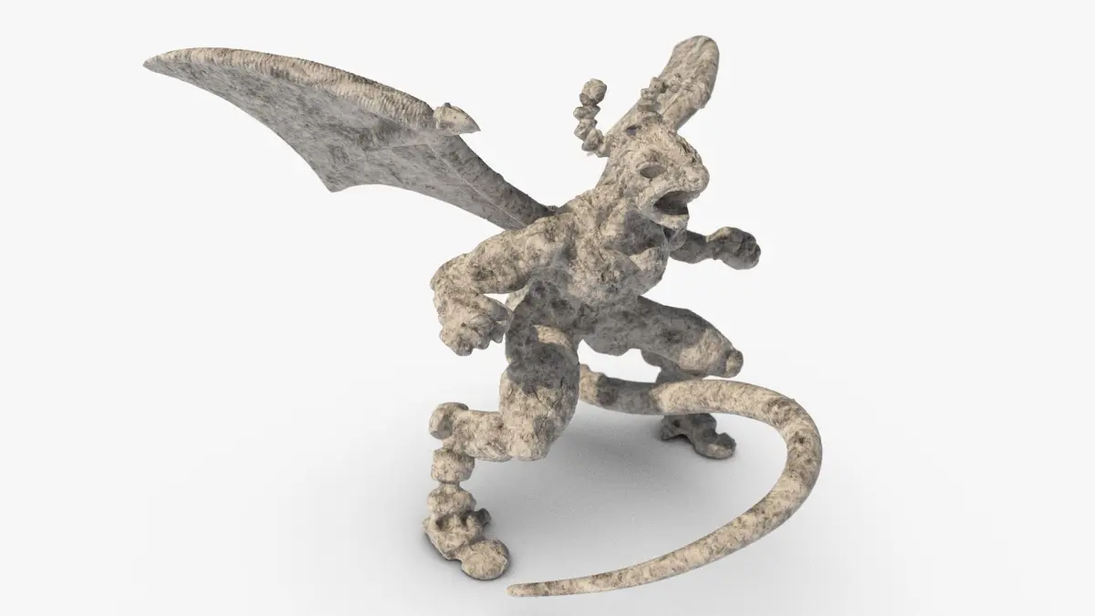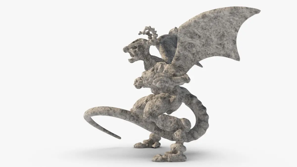 A gargoyle sculpted with Zbrush. The object is Low Poly, with use of a displacement texture.
