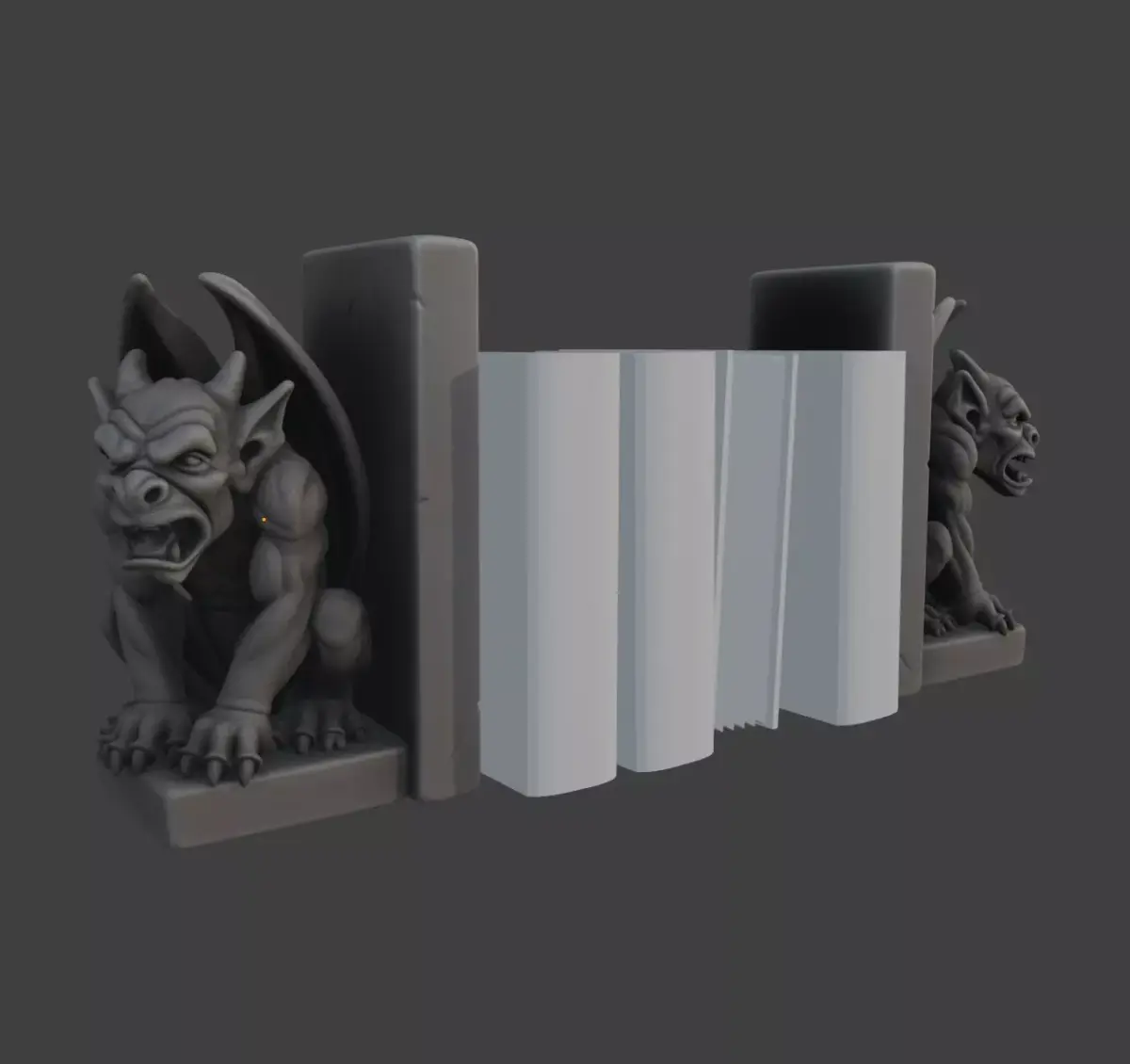 Keep your fantasy tomes and dark literature guarded by these ominous yet regal gargoyles. Designed as a** pair of bookends*, these creatures perch atop gothic bases, ready to ward off evil and ensure your shelf remains untouched by chaos. Each figure features intricate stonework texture, wings, claws, and snarling expressions — *perfect for fans of medieval architecture, fantasy, and horror aesthetics**.