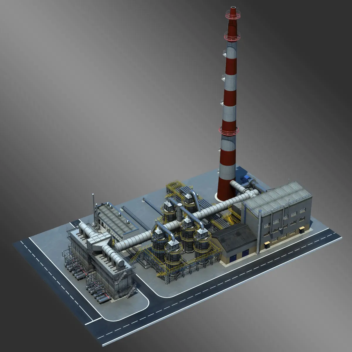 3d model of gas condensate refinery.All objects are merged into the group and could be animated without any problem.Faces - 208549;Tris - 399271;Verts - 244519.