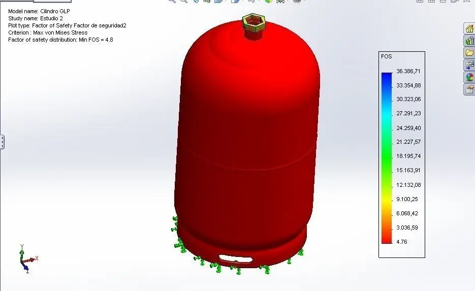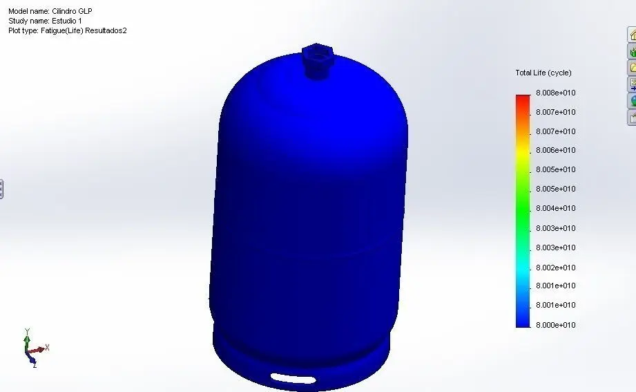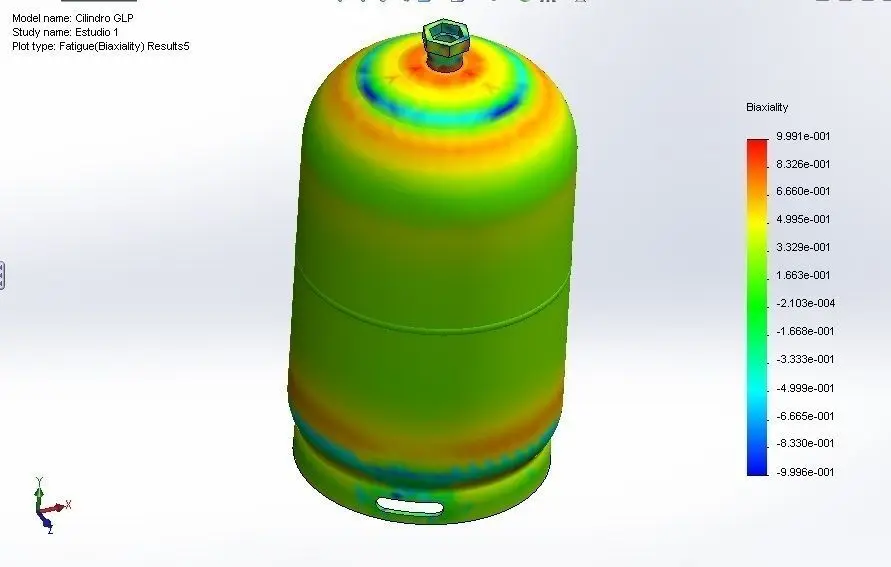 Esfuerzos de von-misses, Porcentaje de daño, Vida total, Indicador de Biaxialidad Para un cilindro a presión interna.