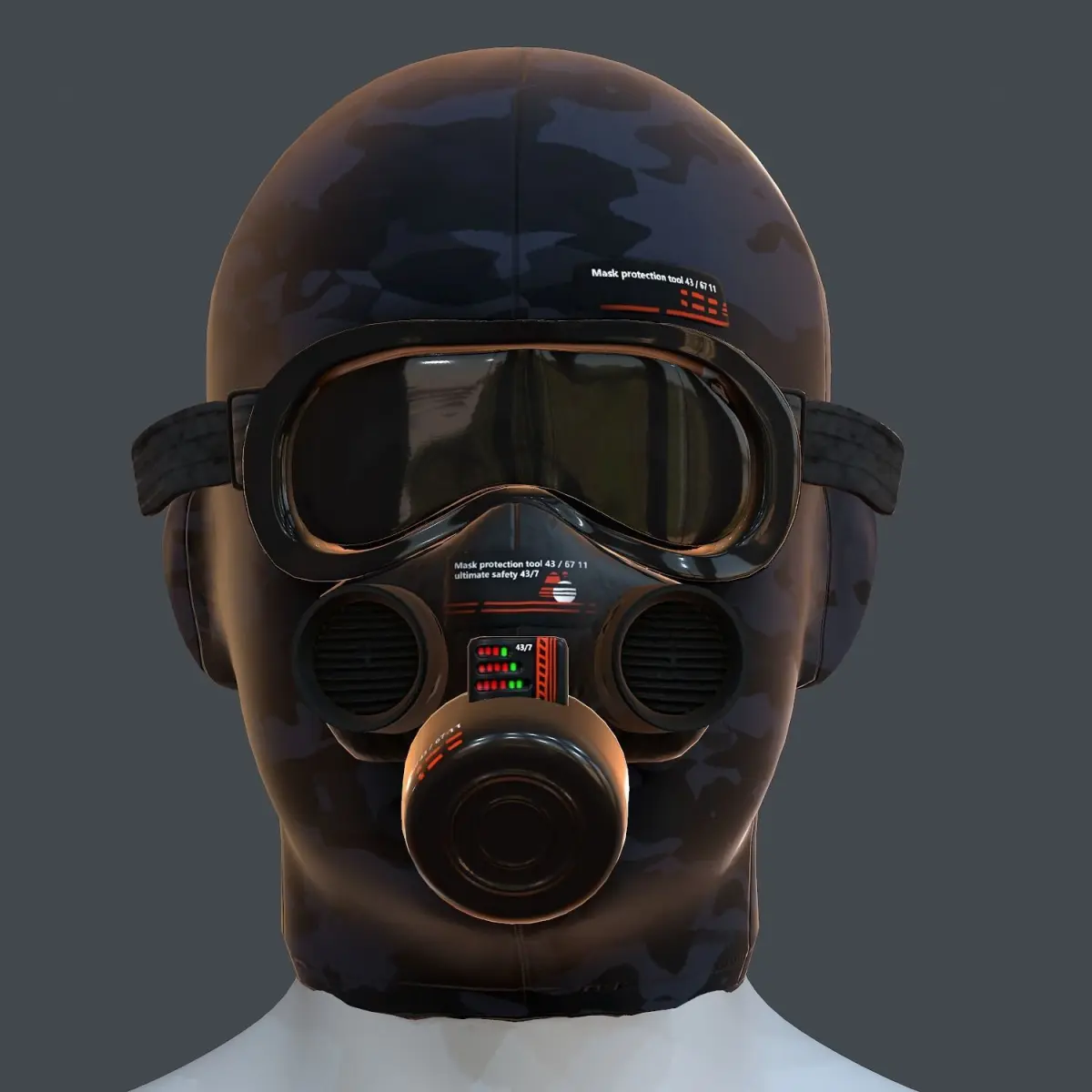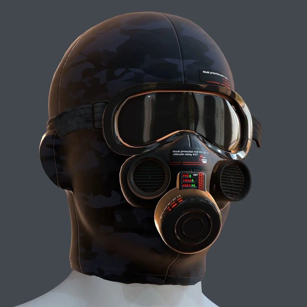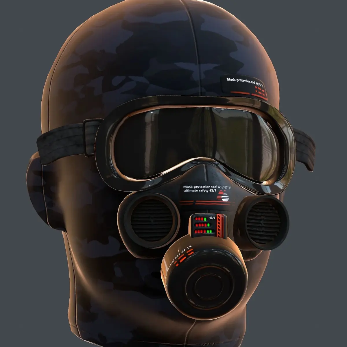 High quality gas mask helmet! This photo-realistic model will bring an expert level of realism to your projects.