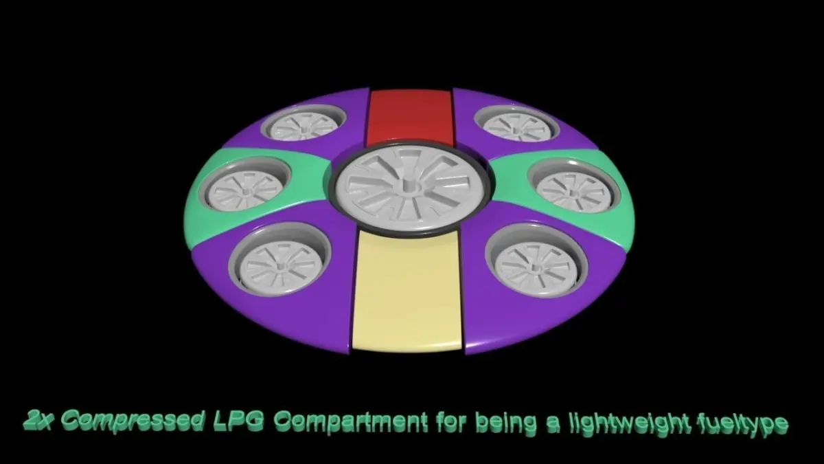 i made the refueling nipples as an example on the bottom, so you could theoretically land near a existing gas-station for LPG gas powering the motors. i dont think we will use much of the helium gas as it is only for assisting in lifting the craft, kept inside the compress helium tanks. we could however have to adjust the helium's pressure inside the tanks adjusting for altitude. maybe a system that can compress the gas further inside the tank, and allowing for expansion again when needed.