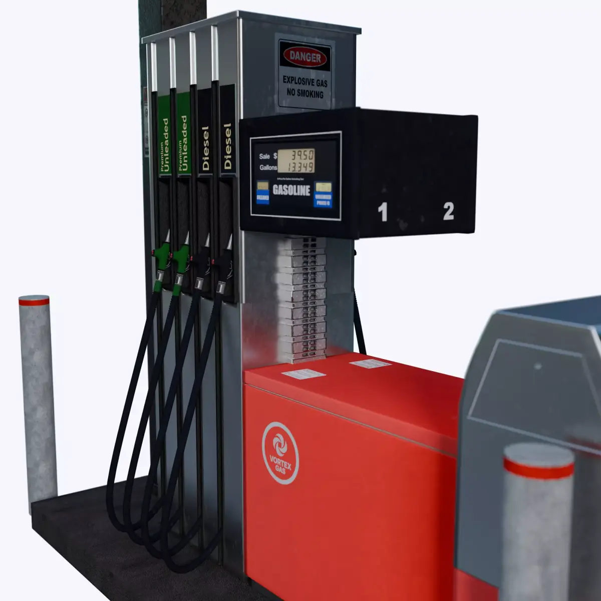 This is a high-quality, game-ready modern gas pump station inspired by real-world fuel dispensers. It’s designed for realistic environments such as gas stations, roadside scenes, driving simulators, and urban environments.