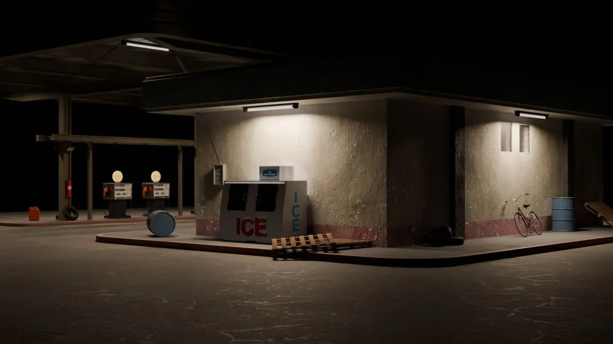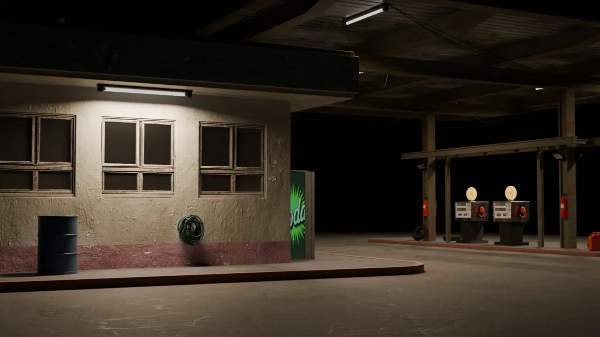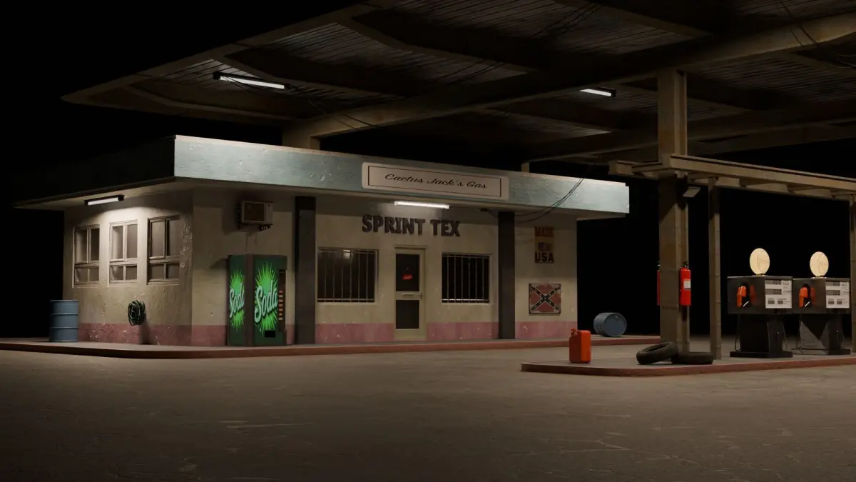 High-quality 3D model of a standalone gas station, suitable for games, real-time applications, and stylized environments inspired by rural or desert locations.