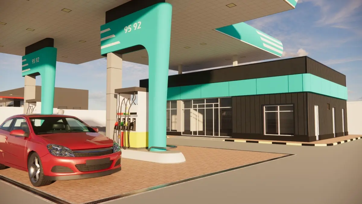Our 3D gas station design is a blend of modern architectural artistry that seamlessly integrates efficiency, functionality, and aesthetics. Below is a brief description of our 3D gas station design: