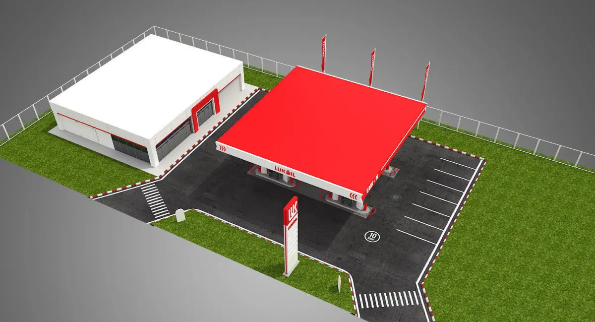 High detailed 3D model of Gas Station, correctly proportional representation of the original objects.This scene is ready for closeup render.This scene created 3ds Max 2015 & rendered V-Ray 3.00.08.