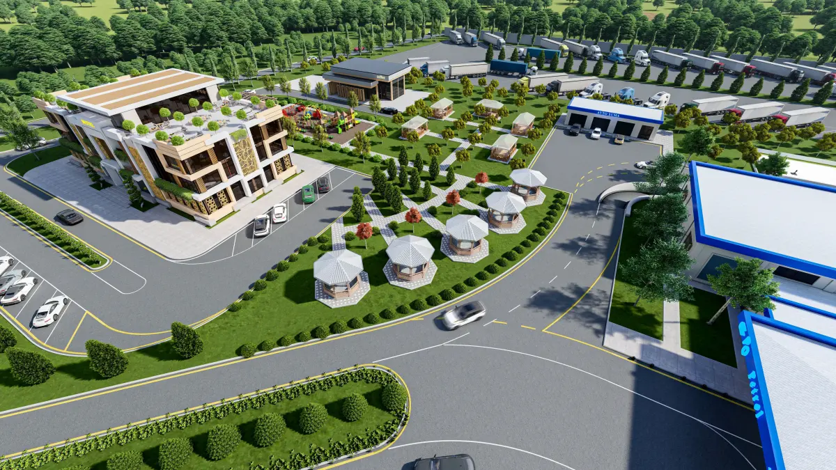 GAS STATION COMPLEX PROJECT.THERE ARE GAS STATIONS, TRUCK PARK, CAR SERVICE, CAR WASH, HOTEL BUILDING (RESTAURANT), CAFÉ BUILDING, GAZEBOS AND CHILDREN'S PLAYGROUND IN THE FILE. MODELING WAS DONE IN 3DSMAX. RENDERED WITH LUMION 12. ALSO AVAILABLE IN FBX MODEL OF THE SCENE