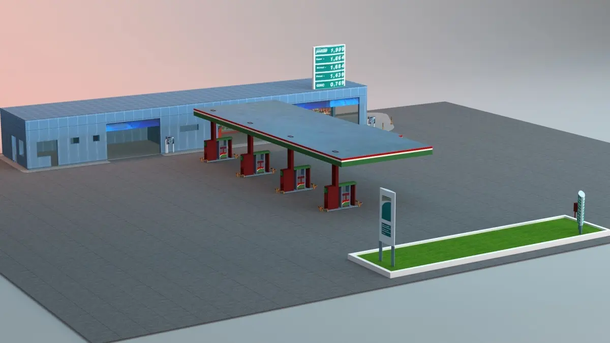 This Gas Station 3D model is uv mapped and texture files are also attached with this. You can call this model Gas Station Petrol Pump or any thing you want.