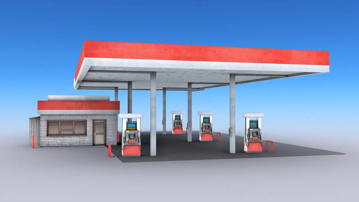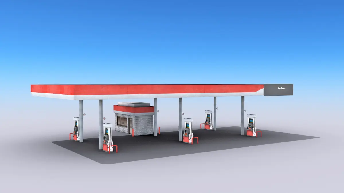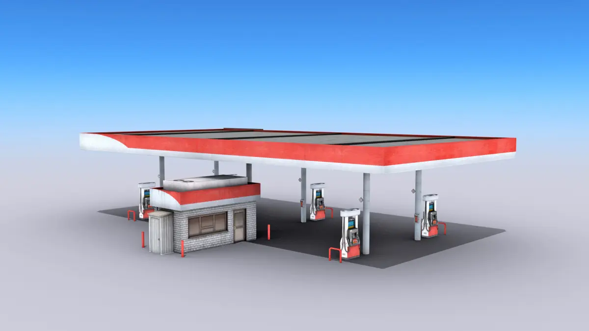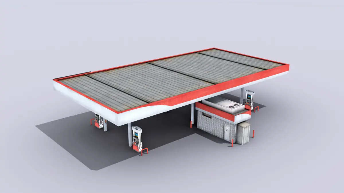 High-quality low-poly 3D model of Gas Station.
