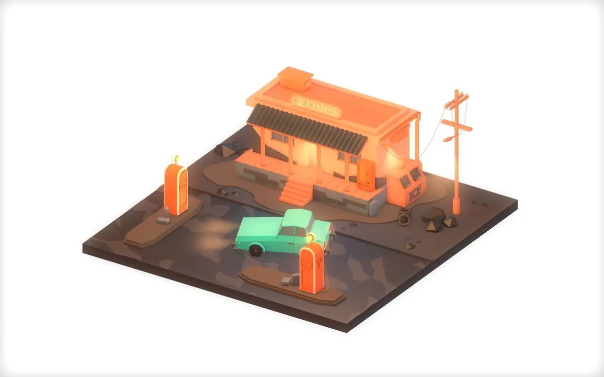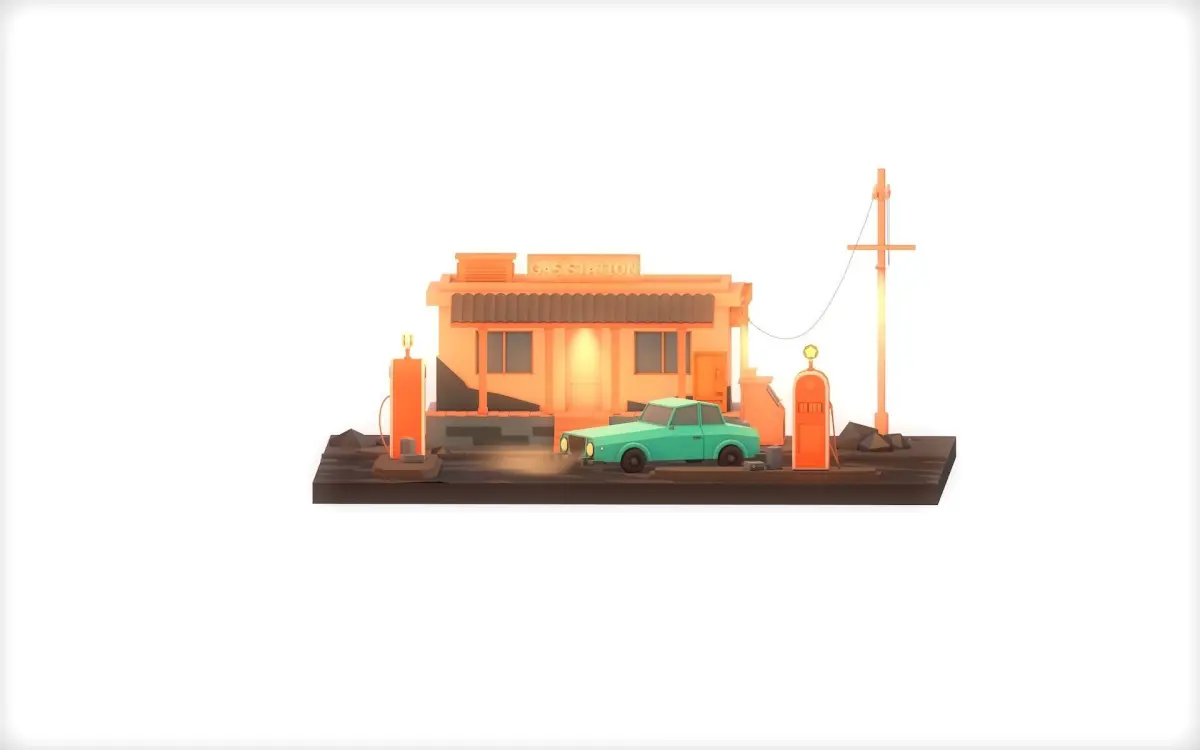 This is a great low poly Gas Station cartoon type 3D model for you projects.