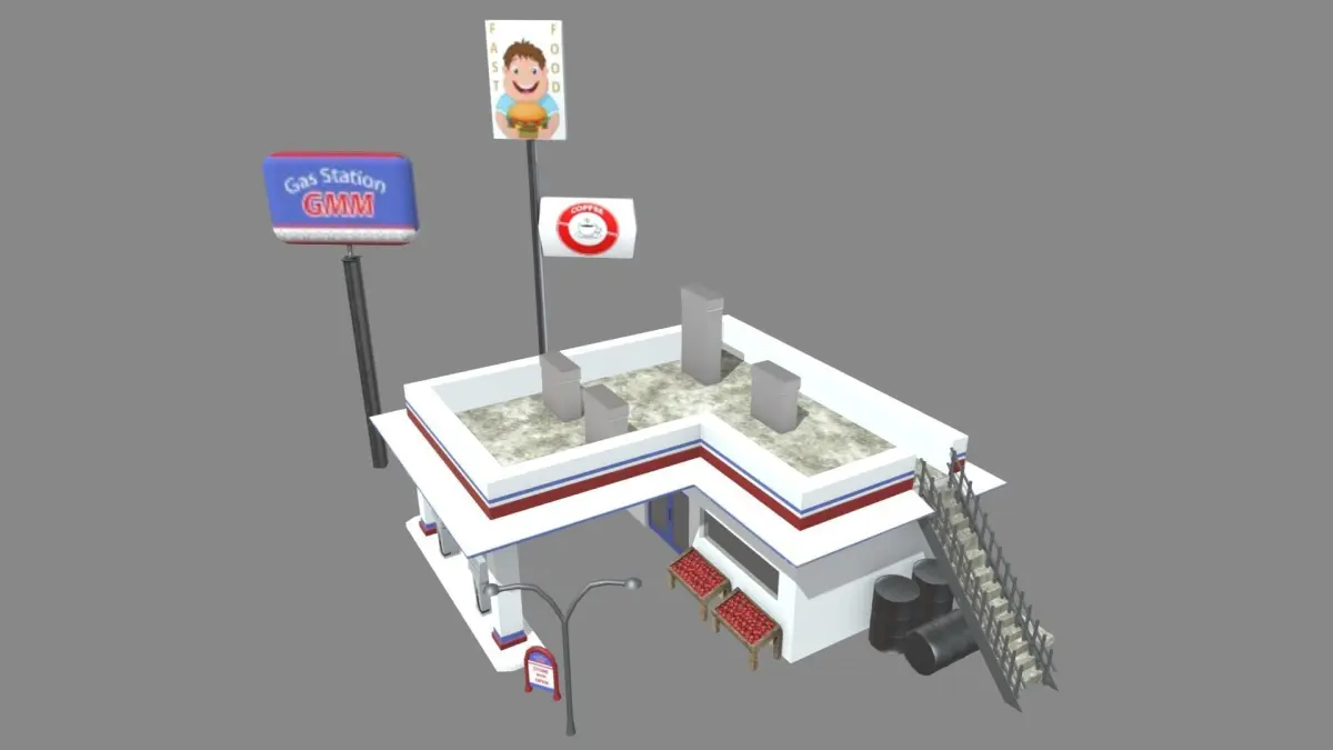 This model contains a great scene from a Gas Station Oil Station, NO INTERIOR. The outliner is divided in every name for every part of the scene. Very well organized, as i said before, any problem you have or doubt, contact me and i will help you. If you need any other picture or video tell me.