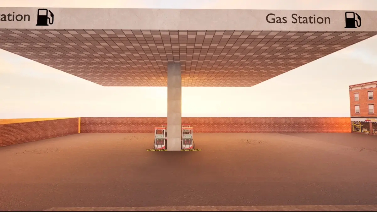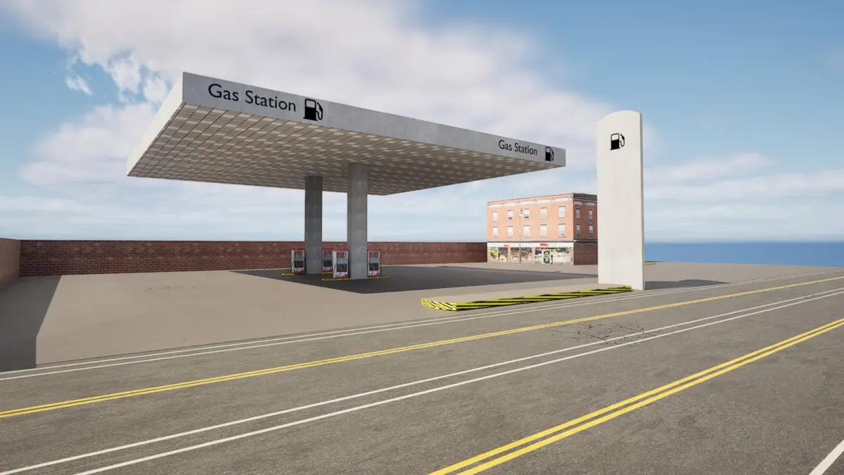 Gas Station Realistic 3d Model with road on FRONT.This model includes a basic scene of a gas station road , walls and a building on side.The model is made using:-BlenderIs Optimized for GAMESIt consists of 20,000FACES (the whole environment)It is a .FBX file so you can import it in game engines like Unity and Unreal EngineTexturesare embeded with the model (just click extract textures on the model preview in unity engine to get the textures in your project)