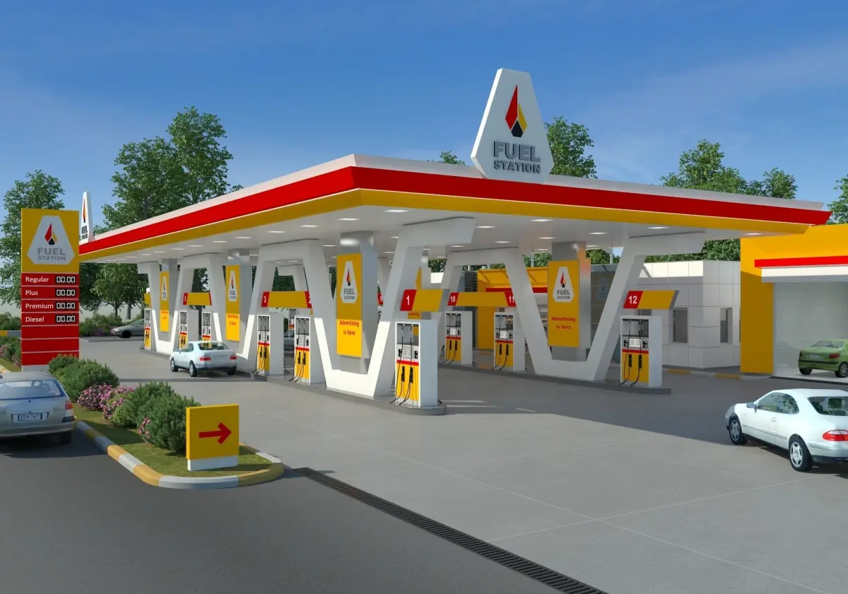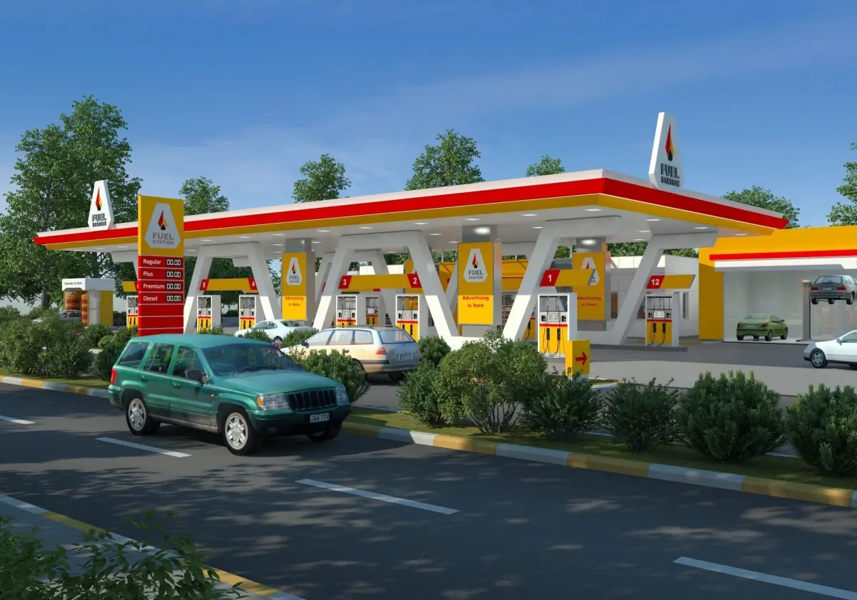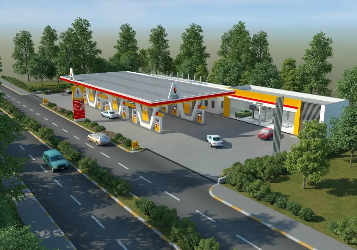A new design gas station 3d model that has day and night lighting is ready for high quality rendering.
