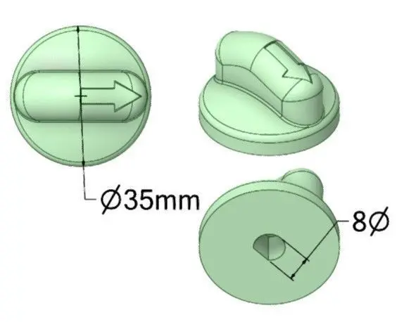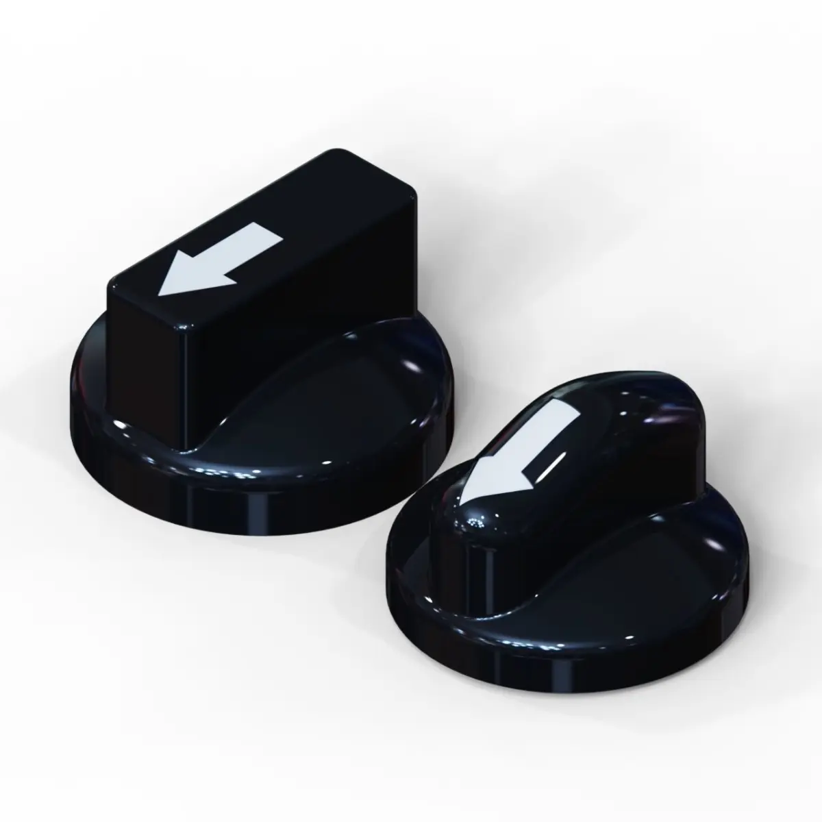 Models:i.)Arrows for each model2nd arrow works for Knob 1 small and knob 2ii.) Big Knobiii.) Knob 2iV.) Big knob arrowMaterial: PLA, ABS, ASA, PC, Hard resin,Wall thickness: minimum 1mm,Infill: 5 to 20 % grid,Brim: 8mm,Temperature: 260 C (ABS)Bed temp: 100 CSupports: not necessary.