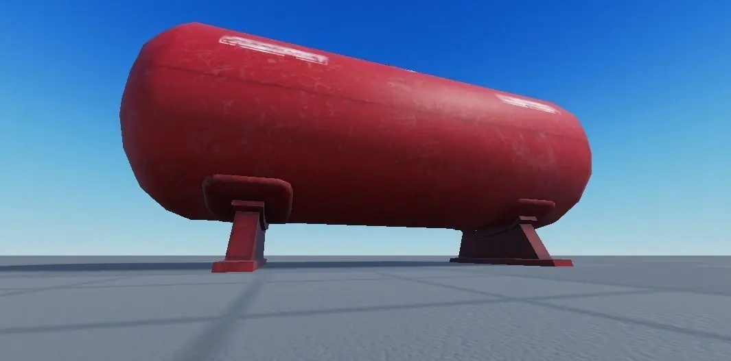 A 3D Model of a Gas Tank. With lots of detail, you can see that it realistically resembles a real life gas tank. This is perfect for industrial games.