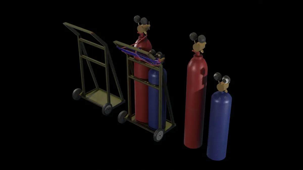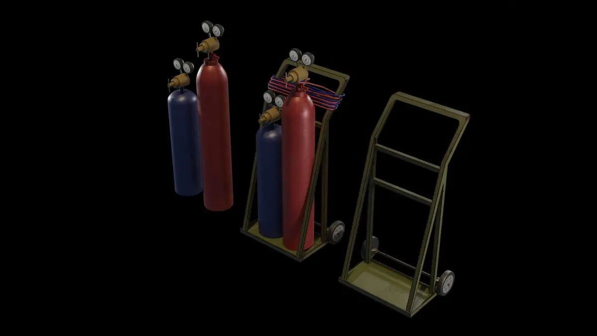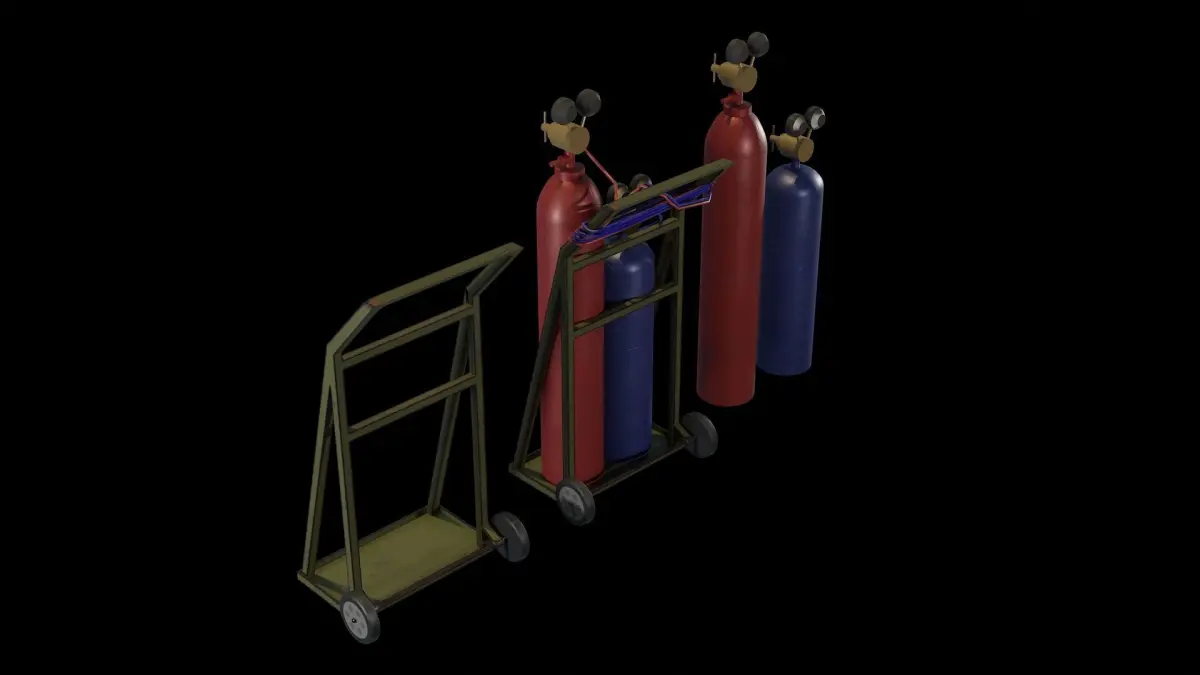 Realistic and high quality gas welding set assets. Gas tubes, welding cart and cables are separate meshes. So you can use the tubes or the welder cart tool separately.