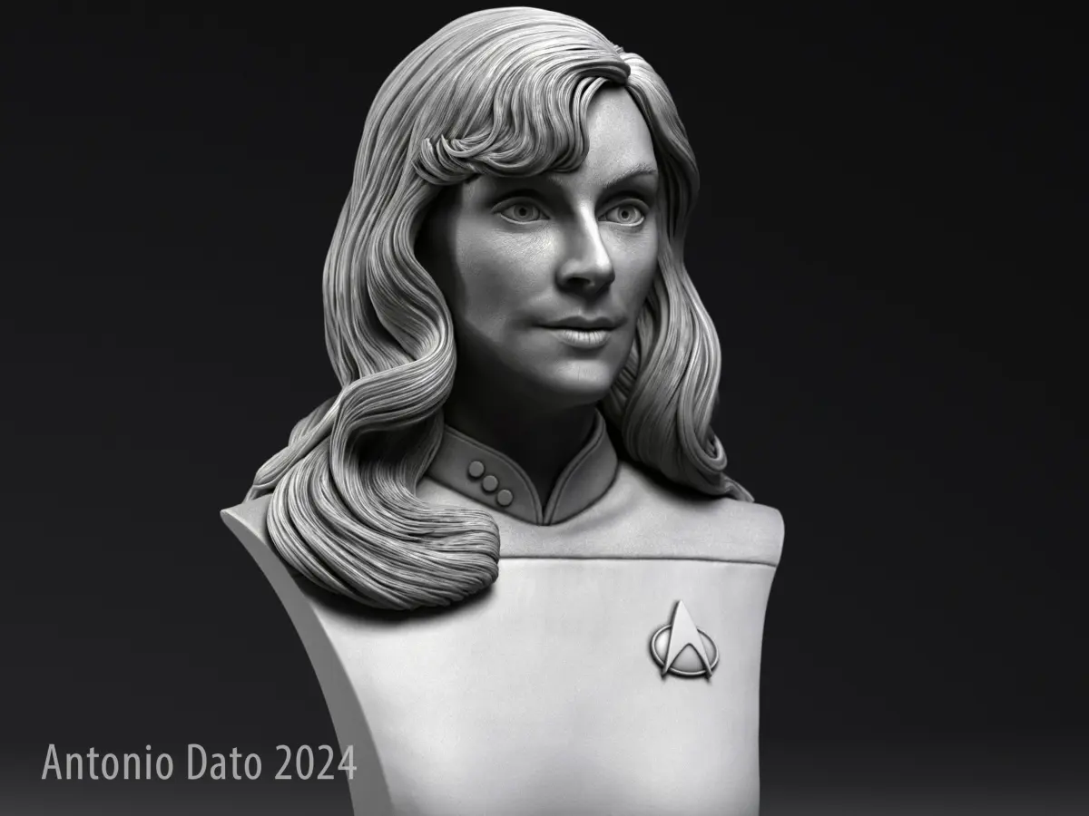 Highly detailed 3d printable bust of Gates McFadden in the role of Beverly C.Crusher, Chief Medical Officer of the starship USS Enterprise NCC-1701-D from Star Trek: The Next Generation Series.