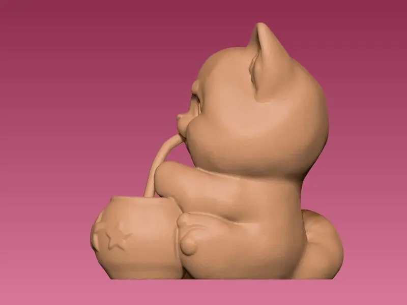 The design showcases a cute little cat sipping from a traditional Argentine mate, blending cultural elements with a playful touch.PurposeThis model is perfect as a decorative piece for fans of cute animals and those appreciating cultural symbols like mate. It's also a delightful gift for cat and mate lovers.Printing AdviceTo capture the model's intricate details, use a resolution of 0.1 mm layer height. Recommend printing with PLA to maintain vibrant colors. Supports may be necessary for the protruding parts.Assembly InstructionsThis model is a single piece, requiring no additional assembly. Just ensure proper placement on the print bed to avoid tipping during printing.