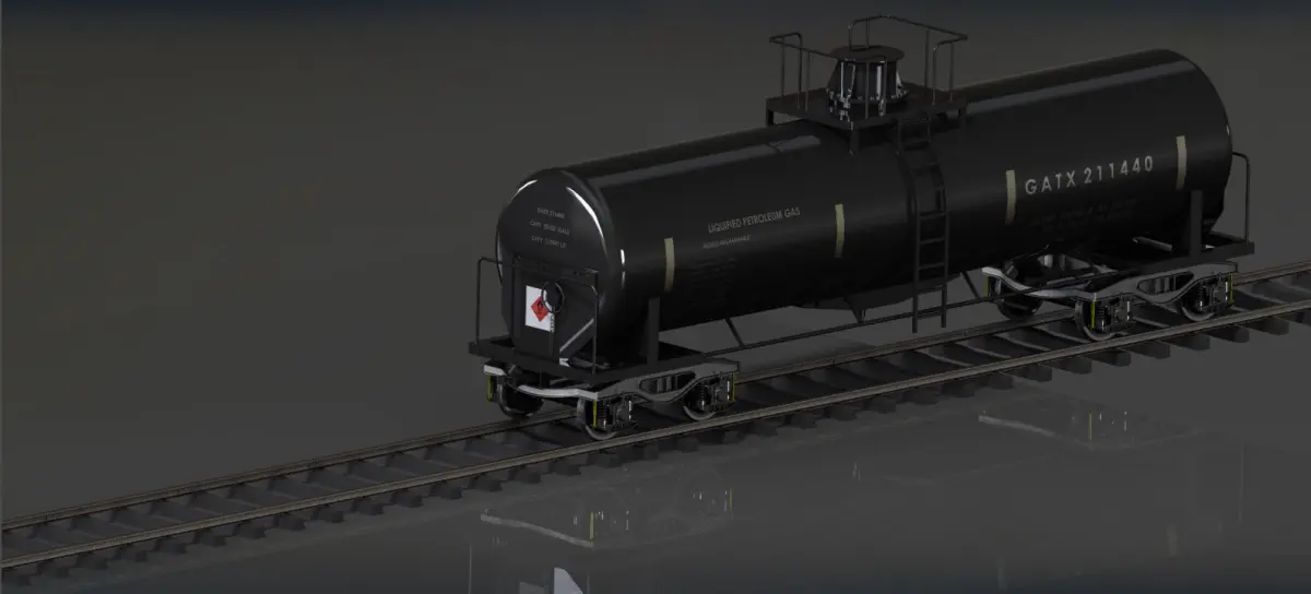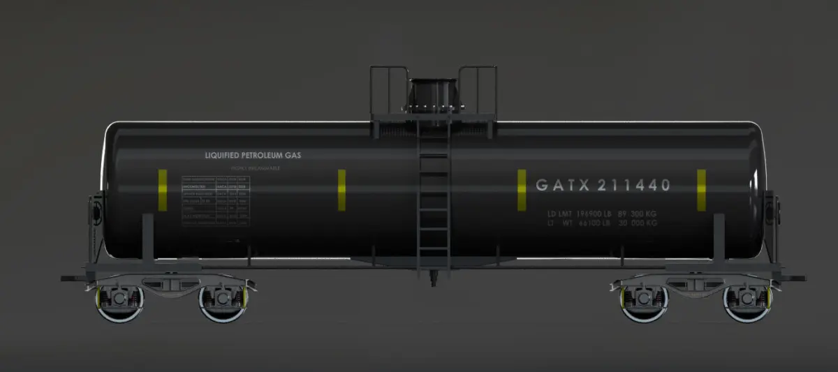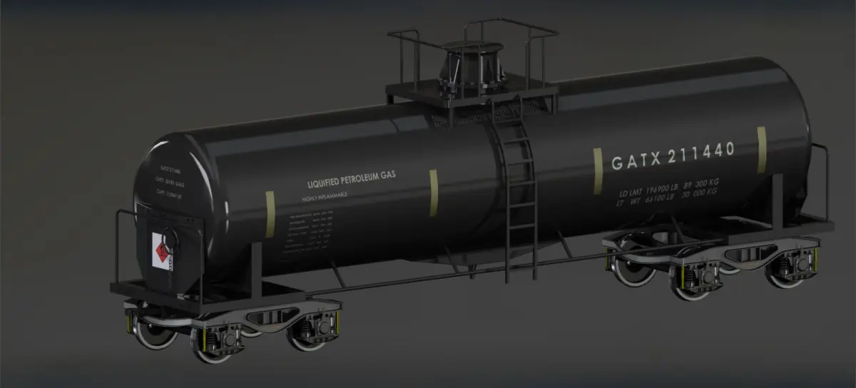 This GATX 211400 model is used to transport refinery products like LPG.