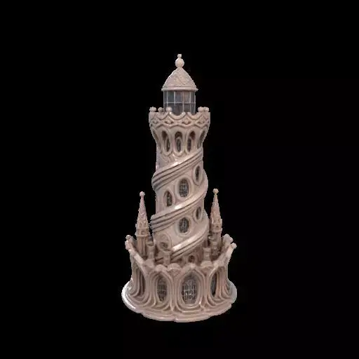 A detailed 3D-printed lighthouse blending Gaudi’s flowing, surreal architecture with Gothic elements. Twisting upward with mosaic-like textures, flowing curves, and pointed arches, this roofless, single-piece model has no moving parts and is optimized for clean 3D printing. Perfect for tabletop display or as part of a fantastical city collection.