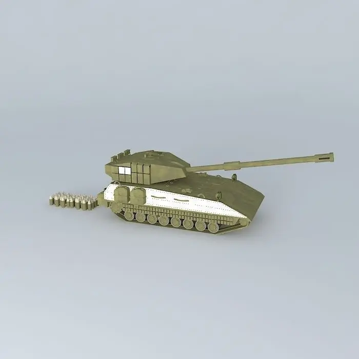 This 3D model was originally created with Sketchup 8 and then converted to all other 3D formats. Native format is .skp 3dsmax scene is 3ds Max 2016 version, rendered with Vray 3.00 Entered service expected in 2018 Crew 2 men Dimensions and weight Weight ~ 30 t Length (gun forward) ? Hull length ? Width ? Height ? Armament Main gun 155-mm Barrel length 38 calibers Machine guns ? Muzzle velocity ? Projectile weight ? Maximum firing range over 40 km Maximum rate of fire ~ 10 rpm Elevation range ? Traverse range 360 degrees Ammunition load Main gun 25 rounds Machine guns 2 Mobility Engine hybrid diesel Engine power ? Maximum road speed 90 km/h Range 250 КМ