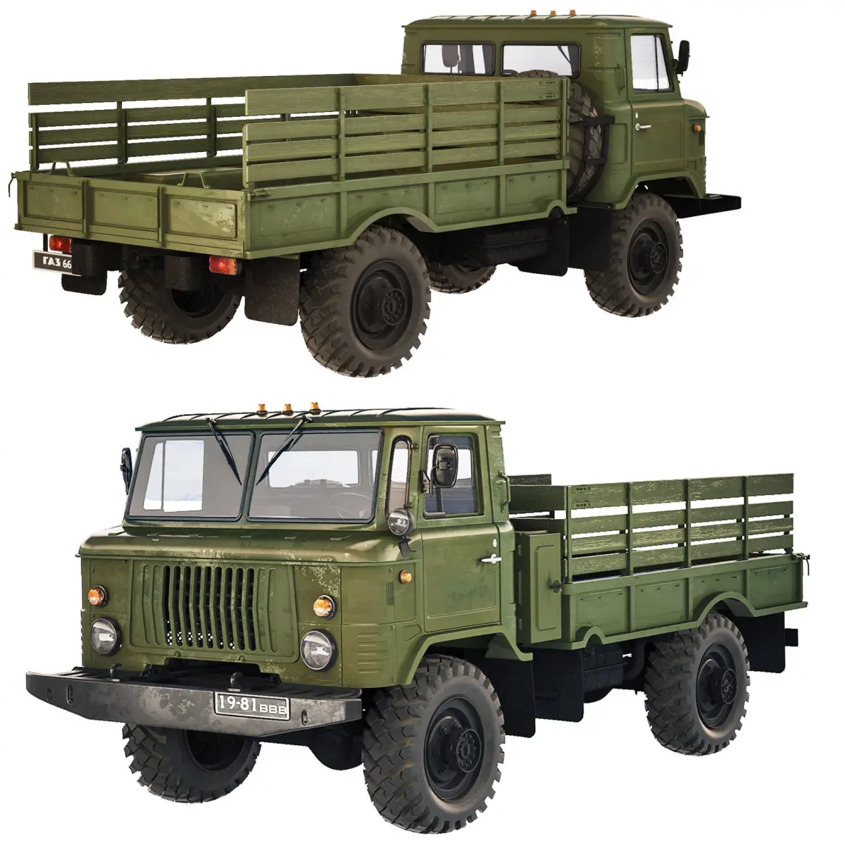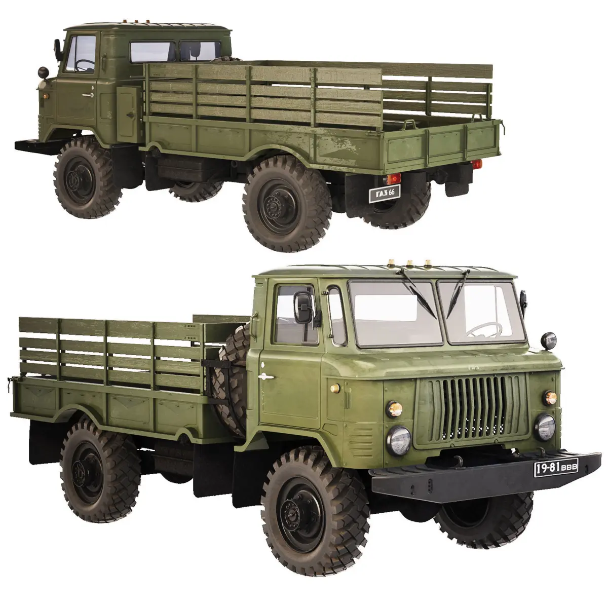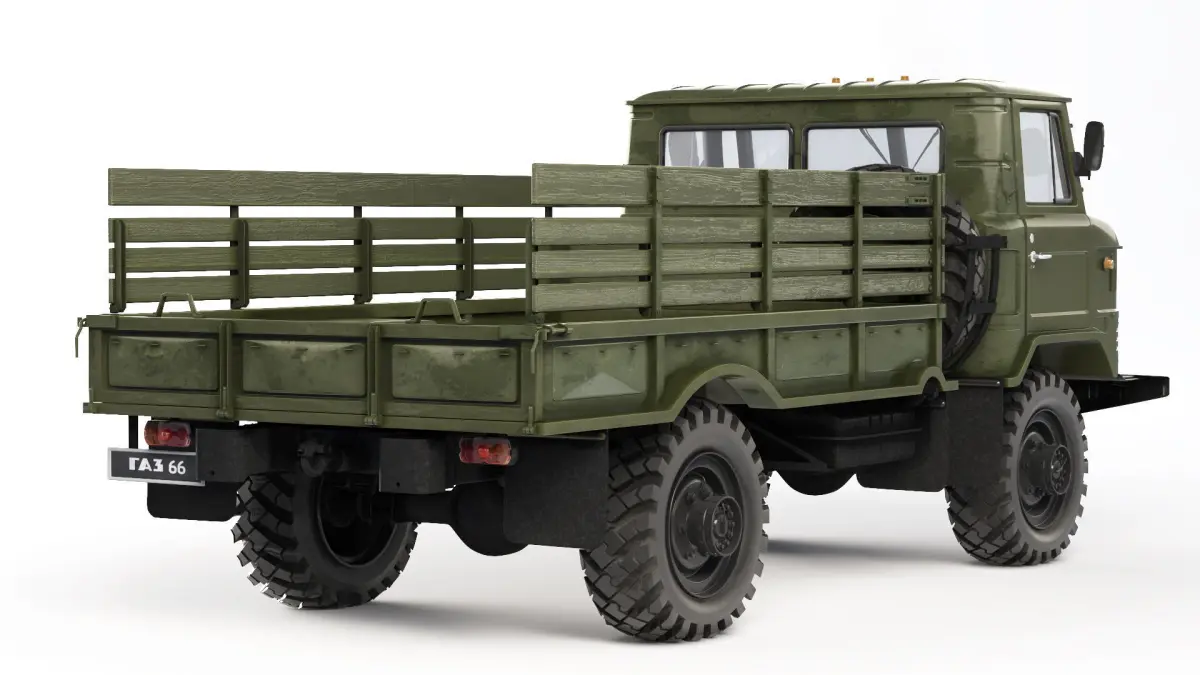 GAZ-66 (colloquial name: shishiga or shisharik) is a Soviet and Russian medium-tonnage off-road truck with a 4 × 4 wheel arrangement, a carrying capacity of 2.0 tons and a cabin above the engine.