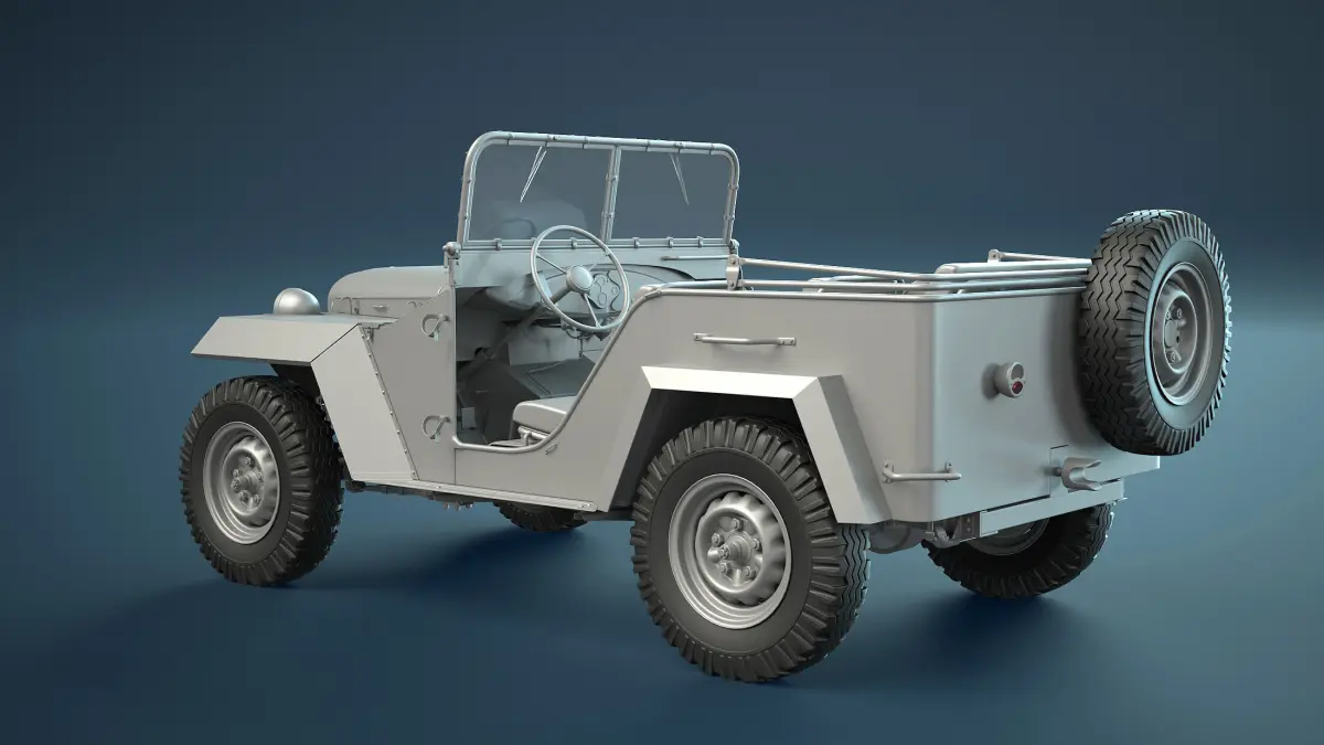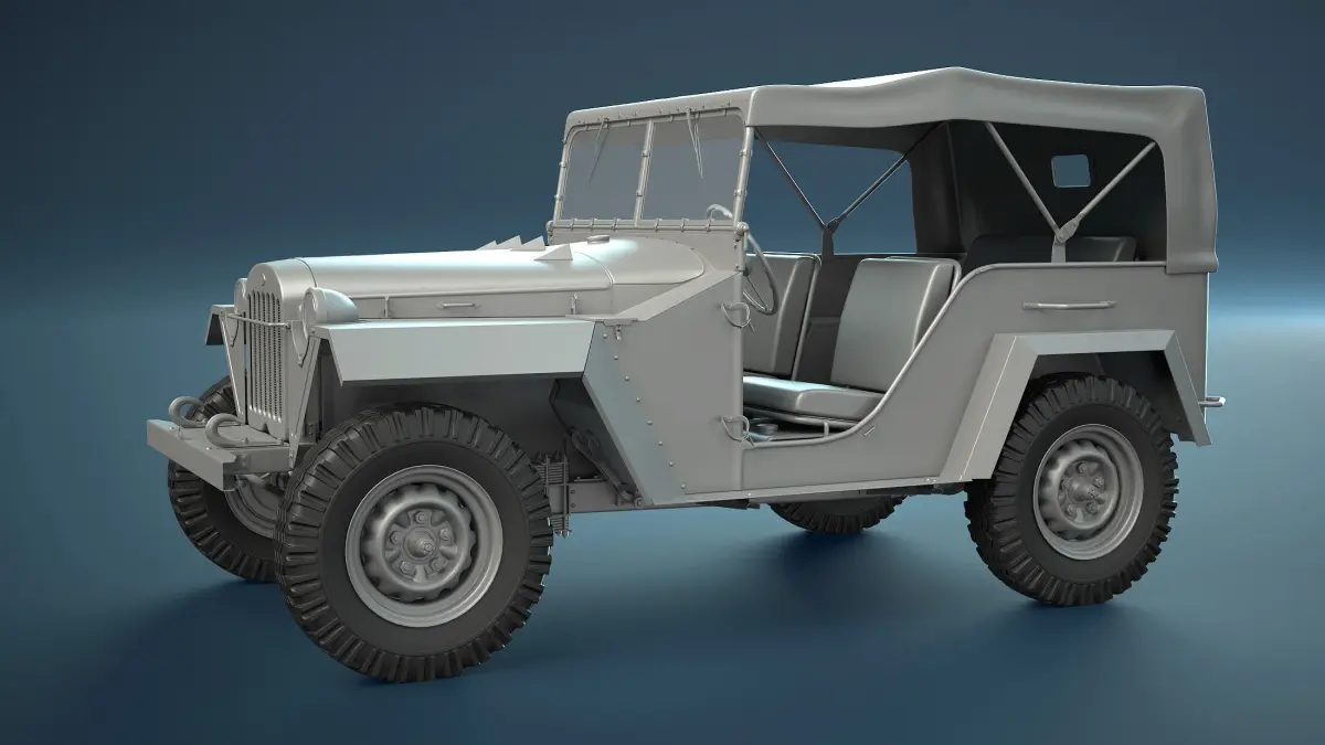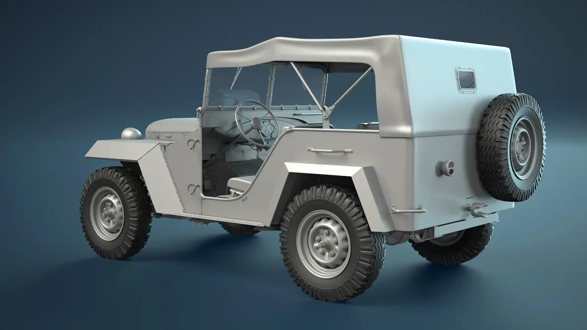 This is a detailed high-poly 3d-model of GAZ-67B Soviet Military Jeep.