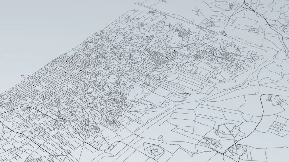 - the model is positioned on a flat surface (road network is on the “floor” - no elevation data included)