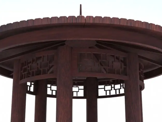 Asian style wooden Gazebo polygonal model. Vray materials and textures included. Also available in standard materials max 9 version