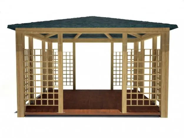 Wooden Gazebo polygonal model. Vray materials and textures included. Also available in standard materials max 9.0 version