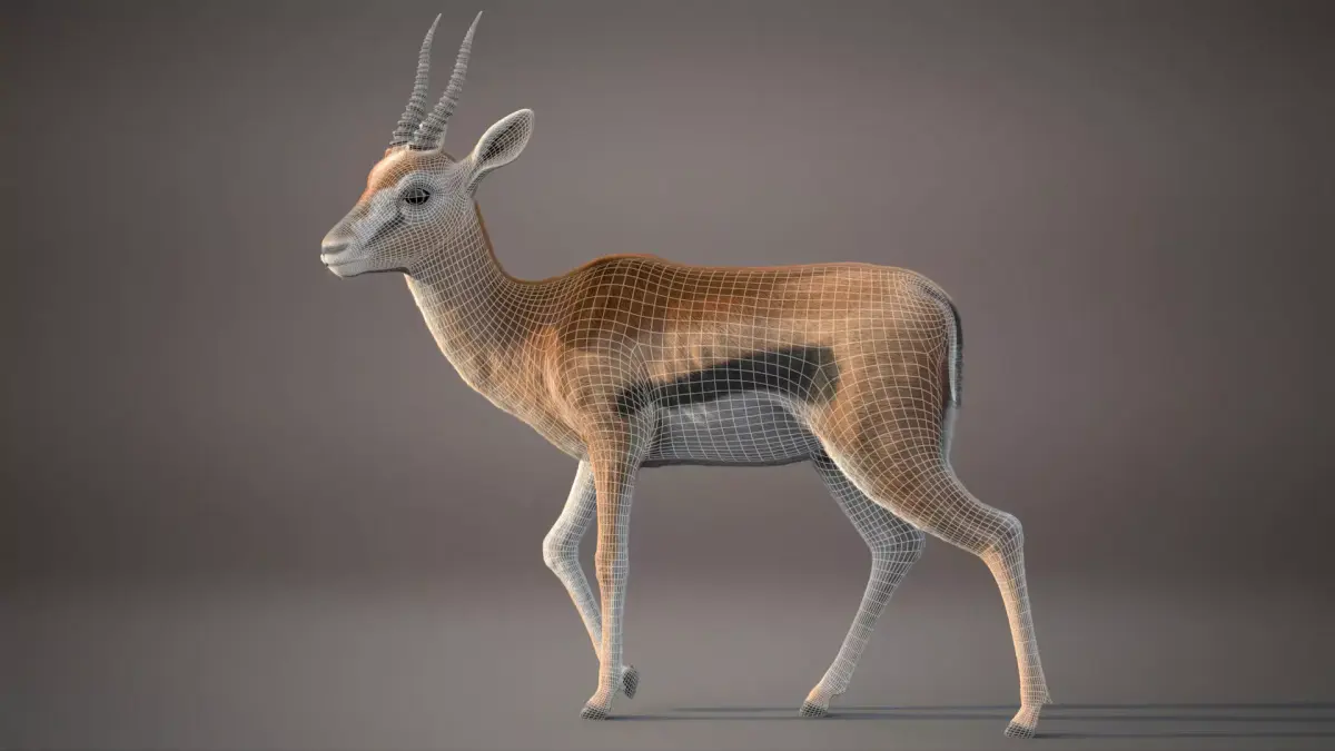 - Gazelle body, tongue, teeth, cornea and iris are modeled separately.