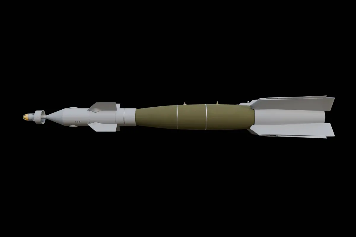A detailed 3D model of a GBU-49, complete with rigged tail fins and seeker head to allow for CGI work. Also compatible with games due to subdiv modeling.All materials procedural and named. Look for the block capitals in the hierarchy for the rig items. The seeker target one can be dragged anywhere in the scene and the seeker will track it within gimbal limits. The rear one should be modified in its constraints tab, which allows the fins to go from fully stowed to fully deployed.