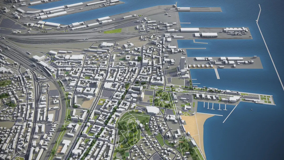 - Full city extents up to 100 x 100 km — or crop to an area of interest for better format compability and scene performance