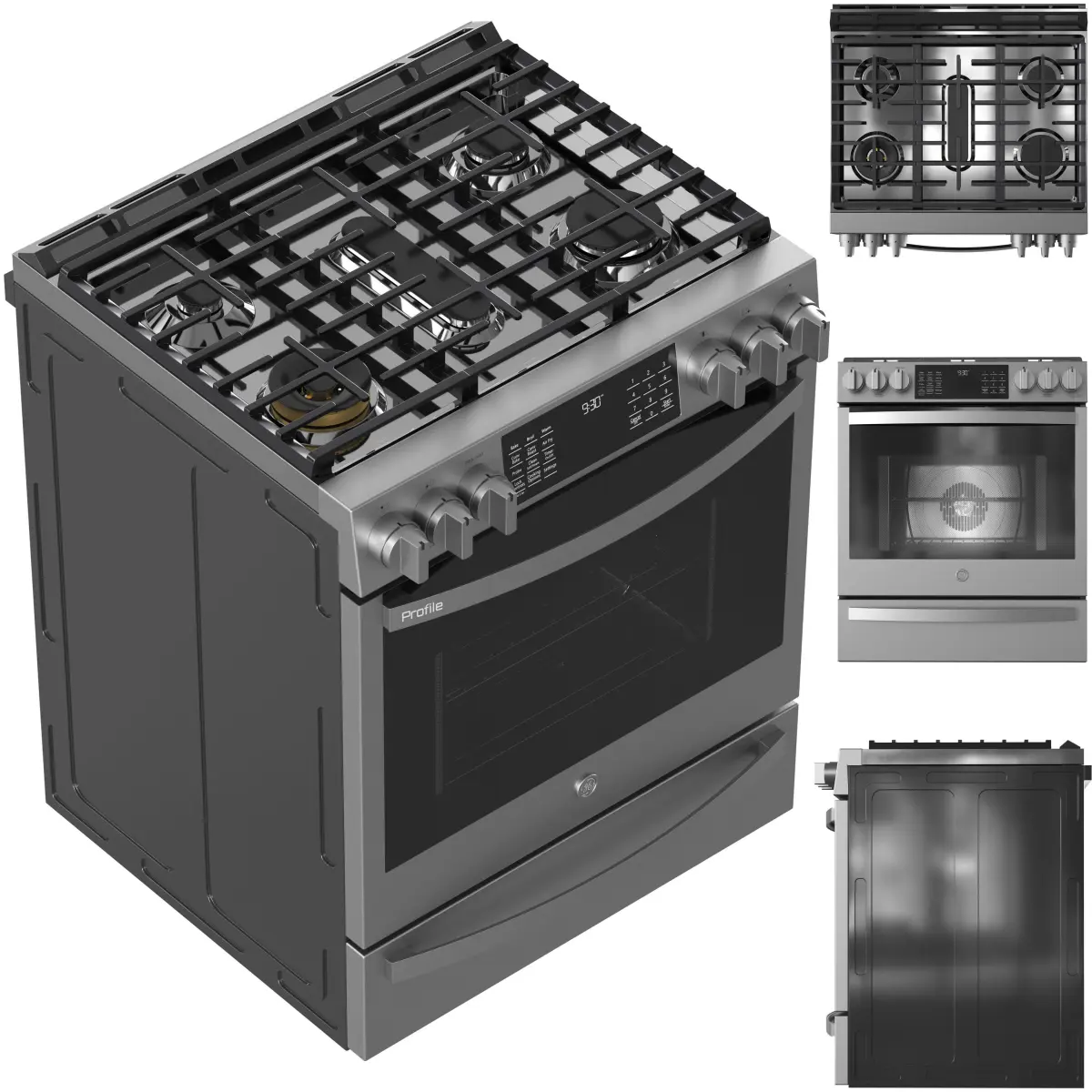 1- GE Profile 30" Smart Dual Fuel Slide-In Front-Control Fingerprint Resistant Range (P2S930YPFS)