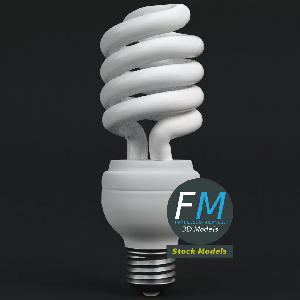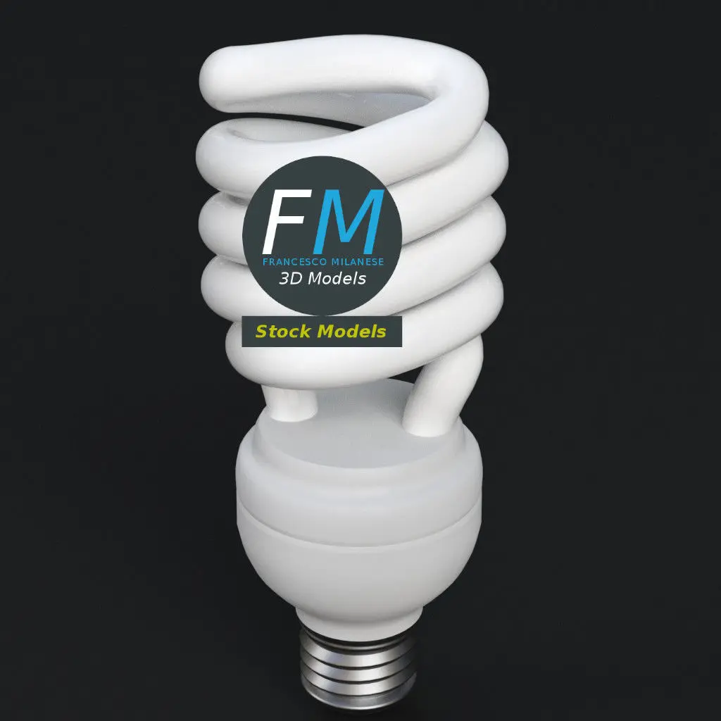 GE-style fluorescent light bulb lamp 3D Model. Production-ready 3D Model, with PBR materials, textures, non overlapping UV Layout map provided in the package.