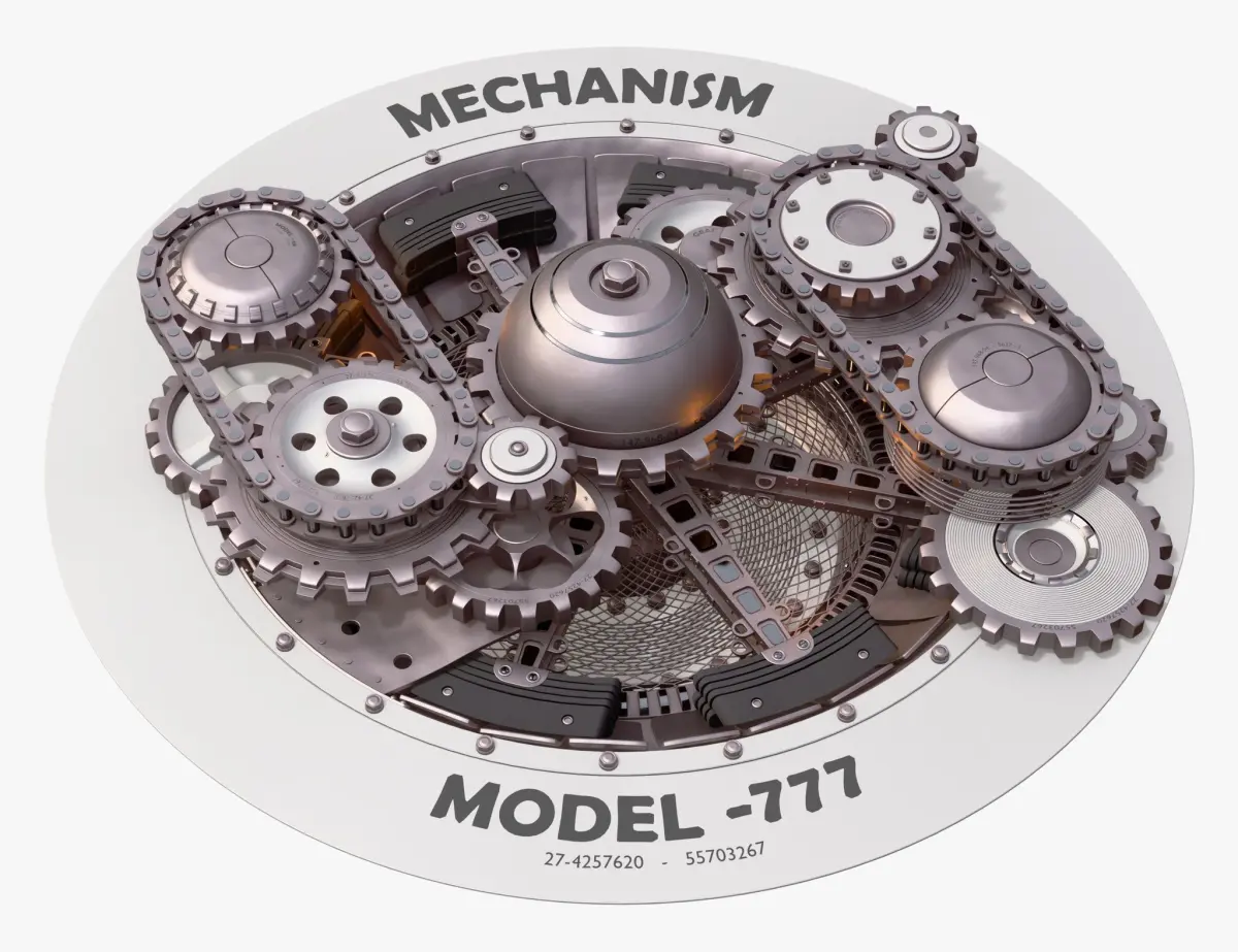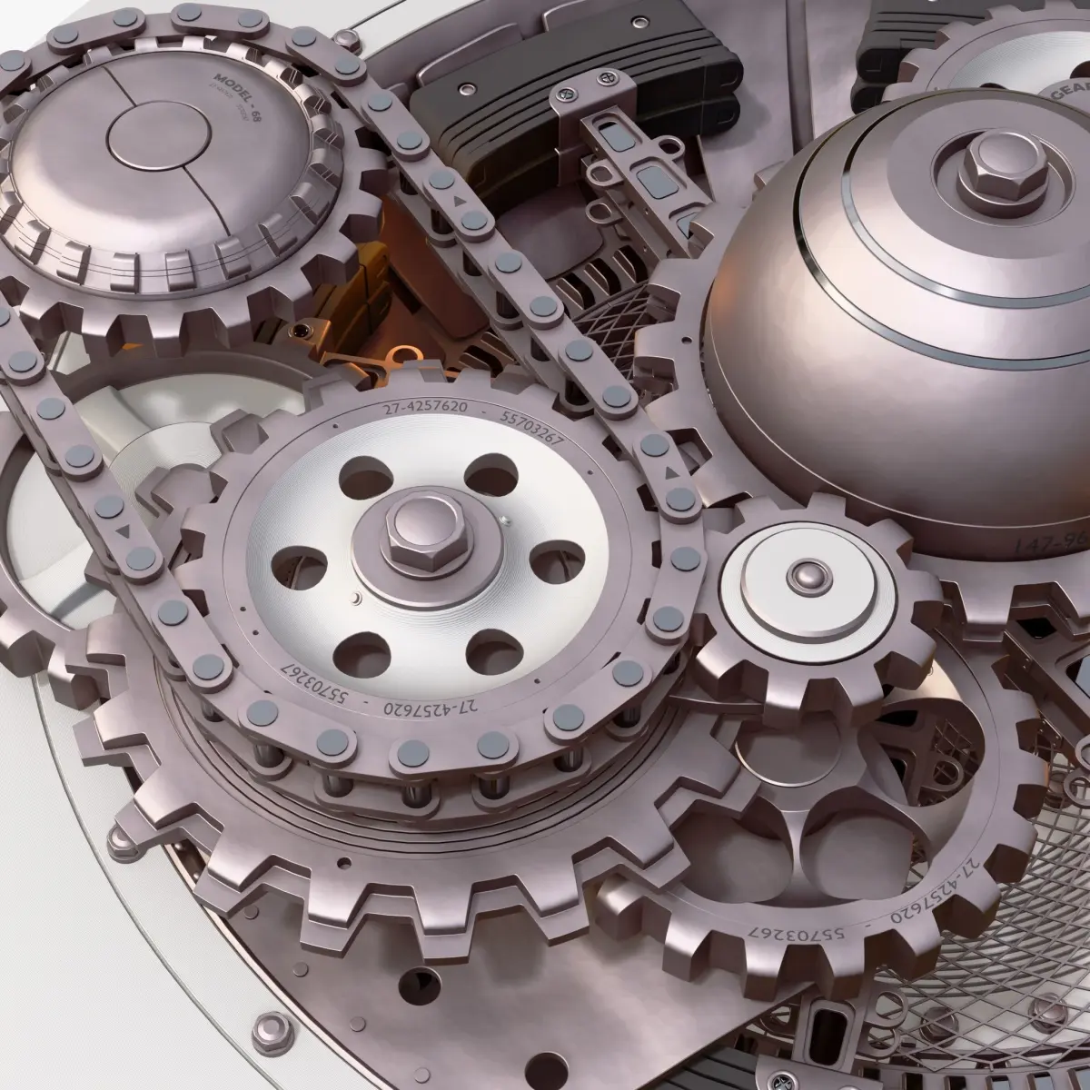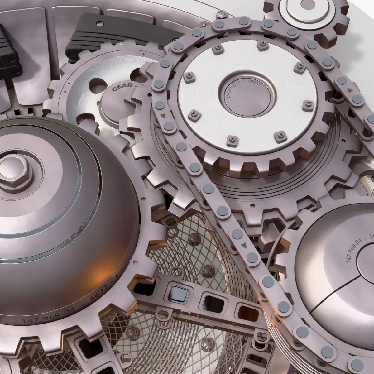 The 3D model 'Gear Mechanism with Chains M1' is an unbranded design made for professional projects.