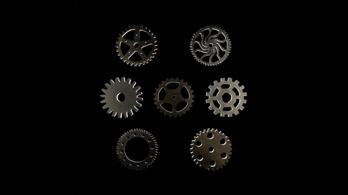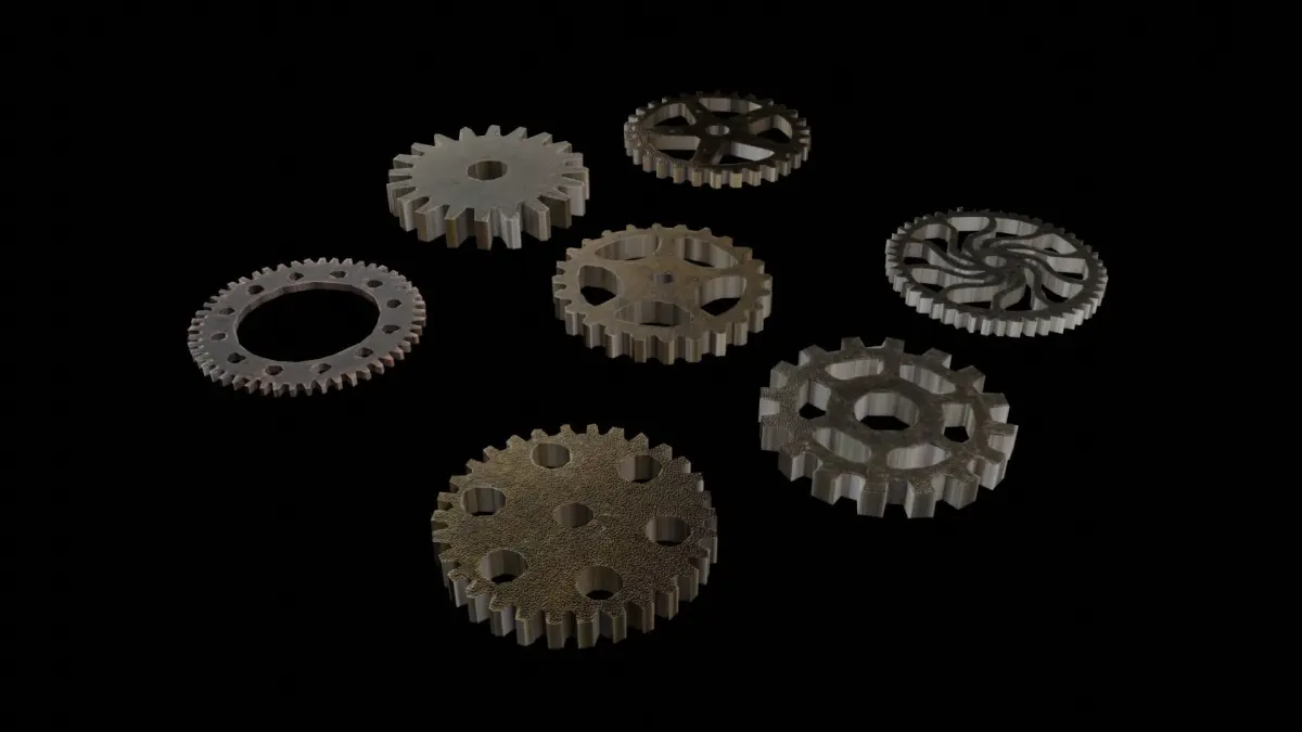 A pack of seven steampunk-style gears waiting for you to use in your next models