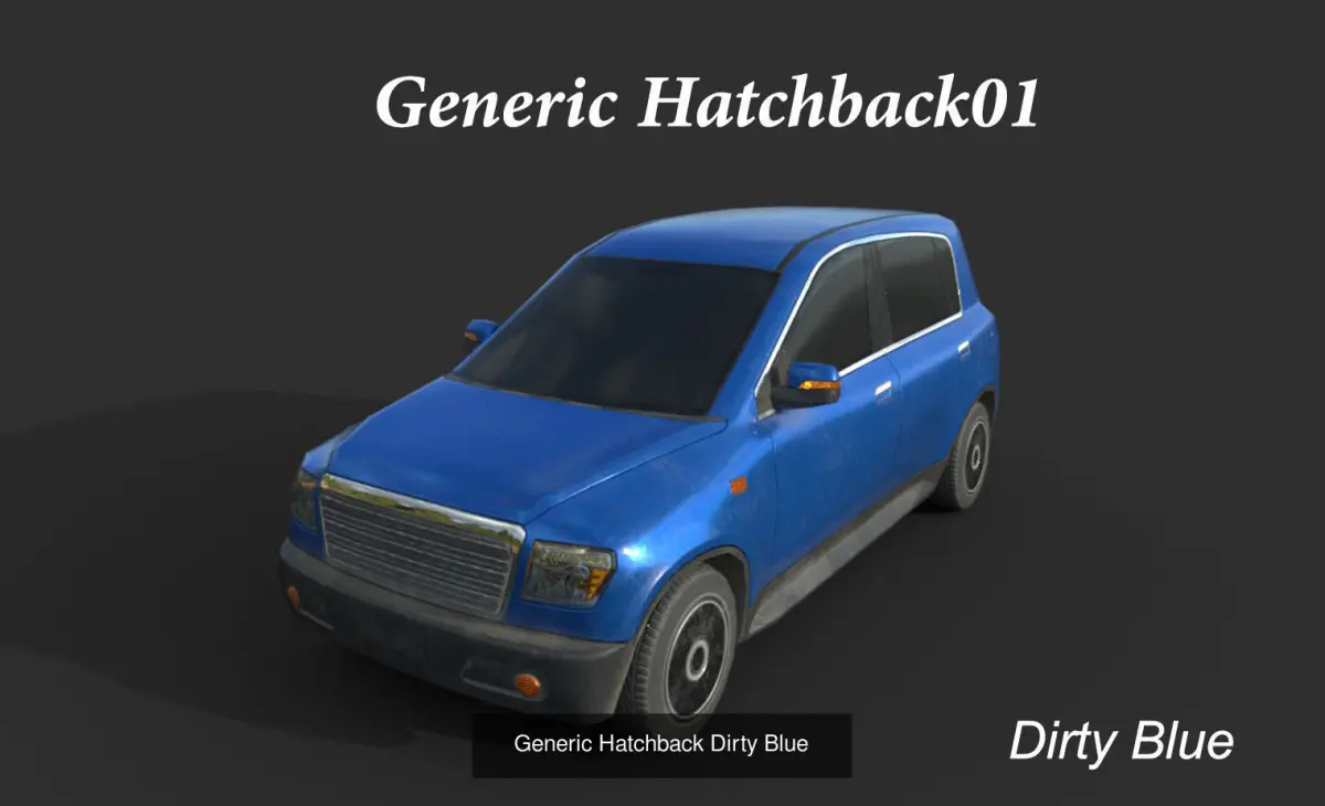 Generic real scale vehicle brand claim proof with realistic textures, very clean topology, low-poly game ready. Pivots for the wheels in right position for easy animation. Geometry position in (0.0.0) of the world and good naming convention. We use PBR(Metal-Roug) Textures 1x2k (2048x2048) + 2 LODs. I can provide higher resolution textures if you need it.