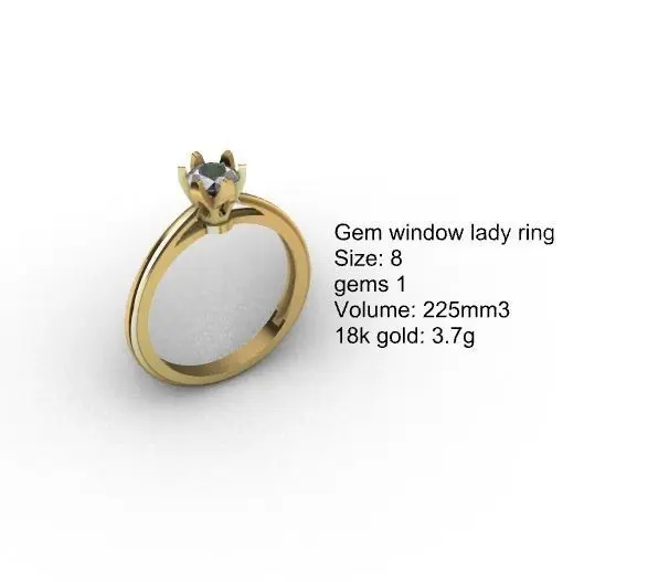 Anillo dama ventana gemaTalla: 8gemas 1Volumen: 225mm3Oro 18k: 3,7g