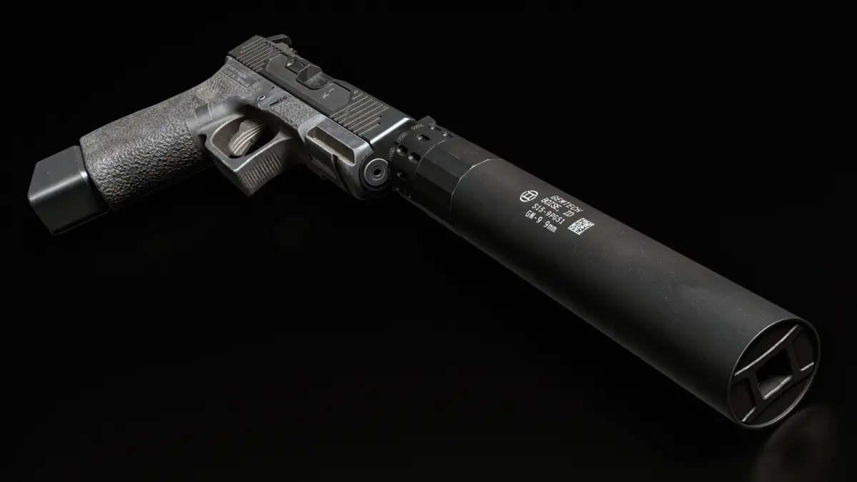 Game ready model of a Gemtech GM-9 Handgun Suppressor.
