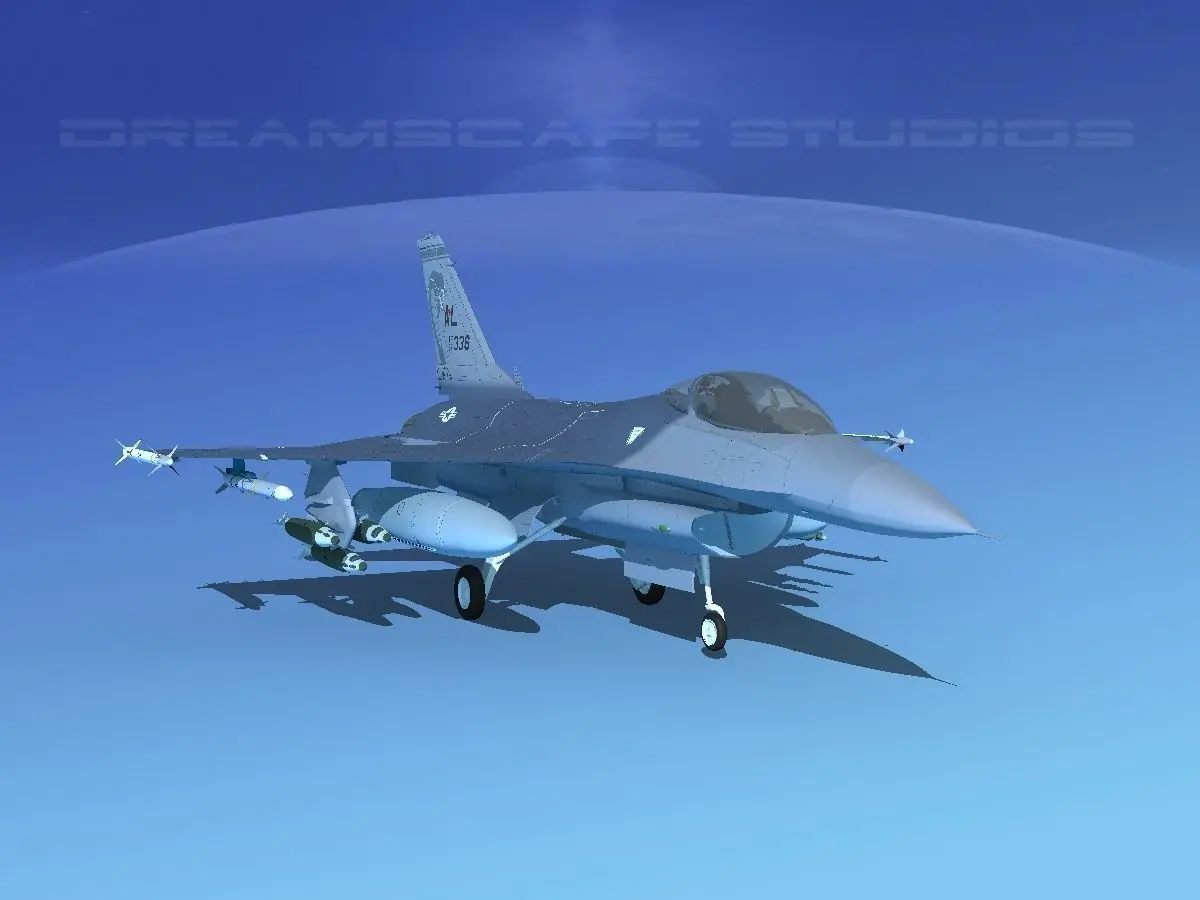 This model is built for visualization and animation. It is a medium to high poly model, It is built near to scale (within a few percent in general dimensions) and is fully textured. The landing gear are also built with a potential for animation including landing gear doors and a good amount of detail. The canopy opens and also can be animated. All control surfaces can be animated including flaps, ailerons, stabilators, and rudder. The cockpit is modeled in some detail but is not textured for the purpose of close up renderings. These models also come with a livery that is 1 of 50 different units of the USAF, Air National Guard of the US various states, and many allied nations. This model comes with the AIM 9X air to air Missiles on the wing tips, GBU 12 guided bombs and GBU54 guided bombs on pylons with BRU058 bomb release units. External fuel tanks are also included on under wing pylons. These missiles, bombs and external fuel tanks are fully textured and textures are also included with the models as shown. See below: