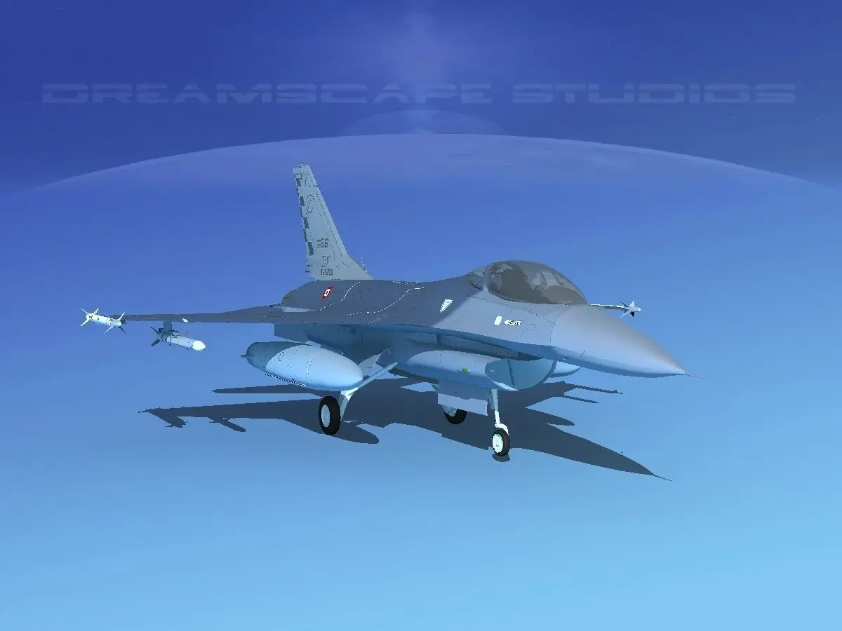 This model is built for visualization and animation. It is a medium to high poly model, It is built near to scale (within a few percent in general dimensions) and is fully textured. The landing gear are also built with a potential for animation including landing gear doors and a good amount of detail. The canopy opens and also can be animated. All control surfaces can be animated including flaps, ailerons, stabilators, and rudder. The cockpit is modeled in some detail but is not textured for the purpose of close up renderings. These models also come with a livery that is 1 of 50 different units of the USAF, Air National Guard of the US various states, and many allied nations. This model comes with the AIM 9X air to air Missiles on the wing tips. External Fuel tanks are also included under wing pylons. These missiles and fuel tanks are fully textured and textures are also included with the models as shown. See below: